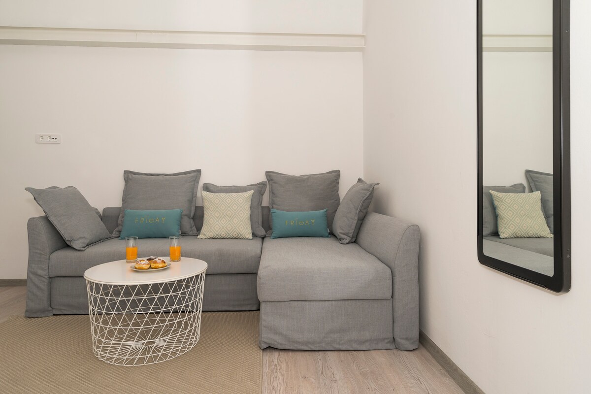 The apartment is located in the attic above the seafront, not far from the city center. It has a large living room, connected to the dining room and a kitchen (with a dishwasher, microwave, fridge, an oven and stovetop) . It also has 2 bedrooms, a spacious furnished balcony, a flat-screen TV with satellite channels, 1.5 bathrooms that are equipped with a washing machine, shower and a hairdryer. The property provides towels and bed linen. Within the apartment there is free private parking.