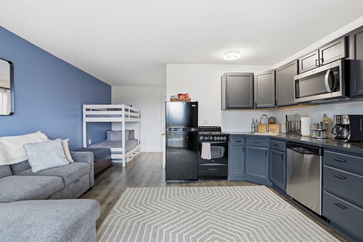 Stay in the heart of Kendall Yards in this stylish studio loft above Uprise Brewery! Walk to restaurants, shops, and the Centennial Trail. This cozy, open-concept space features a queen Murphy bed, full bath with walk-in shower, organic bedding, free WiFi, premium coffee, and local artwork by Ben Joyce. Kitchenette includes a mini fridge, microwave, toaster, and coffee maker. Note: This unit is located above a brewery, so minimal noise may be heard. Quiet hours are observed from 10 PM to 7 AM.