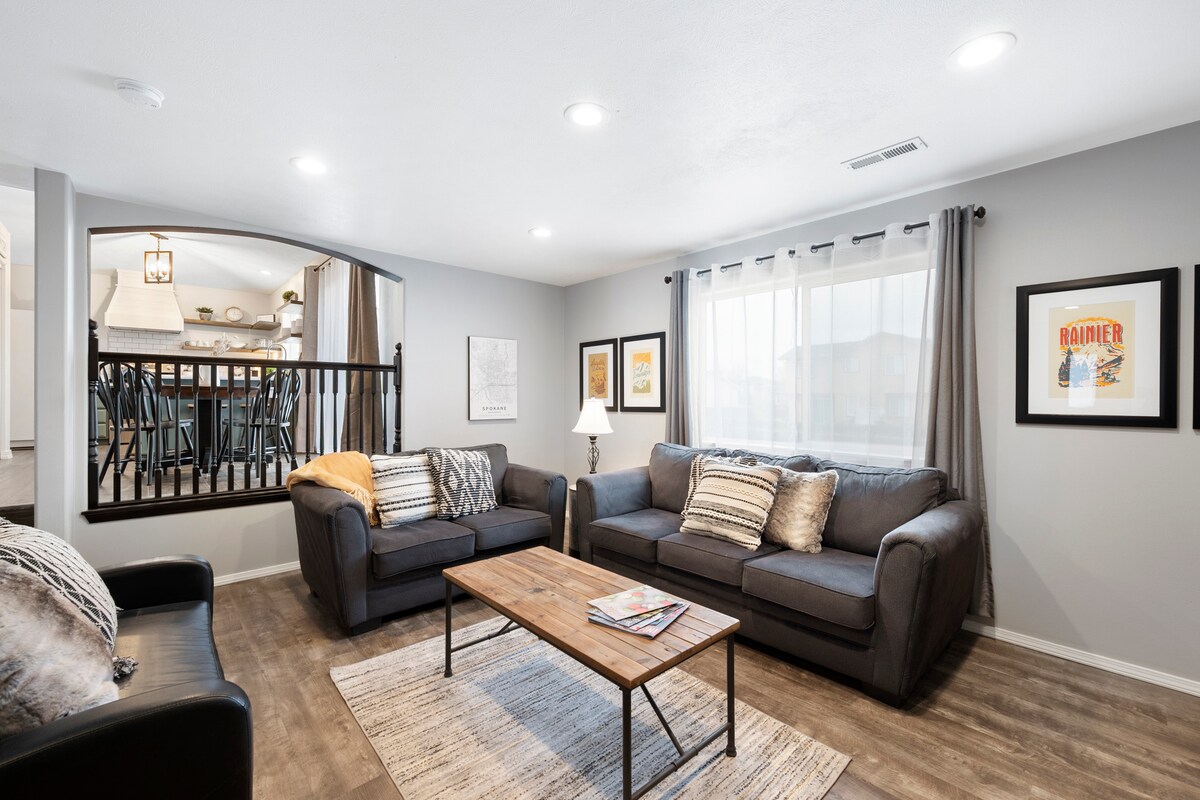 Perfect for all who enjoy a beautiful space to relax and unwind, this stylish home is located in the newer Bluegrass neighborhood in North Spokane. It is within a few miles of everything you could want... restaurants, stores, parks & entertainment, but is tucked away amidst quiet tree-lined streets and sidewalks. This home is listed twice on Airbnb. This is the smaller configuration which hosts up to 5 people. It is not a shared space! Find the “Entire Home” listing and we can host up to 8!