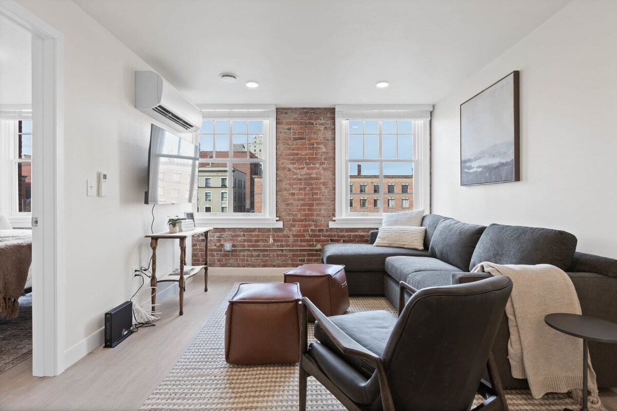 Welcome to J&K on Main! - Thoughtfully renovated luxury travel apartments with high-end finishes. - Full access to your travel apartment, fully stocked with all the amenities you’d find at home. - Luxury Memory Foam queen bed + Sleeping for one on the couch. - Shared pool table room for quality time with friends and family. - Paid secured parking garage nearby ($30+/day which is standard for downtown.)