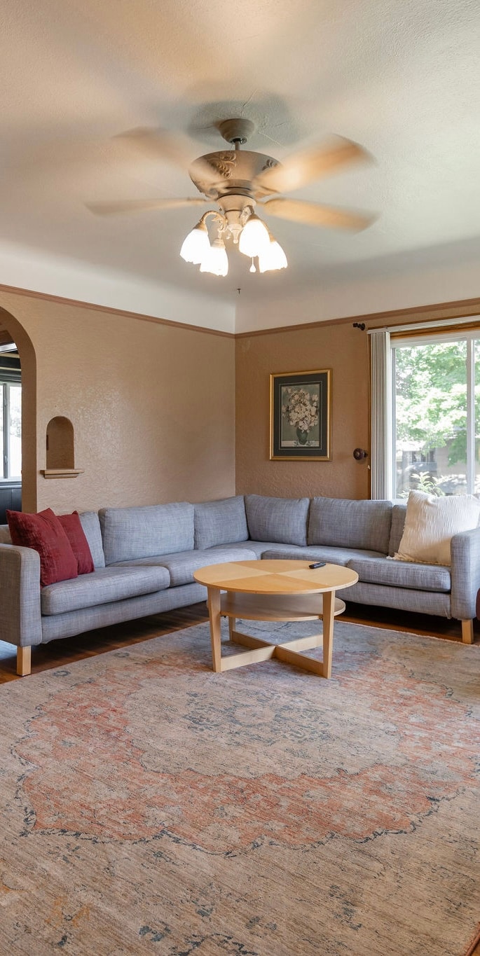 The home is located in the historic Garland district with views of the city. You will be 3 miles from the heart of downtown & within walking distance to antique shops, bars, restaurants & other local businesses. Enjoy high ceilings, large windows, a fully stocked kitchen, 75"&55"TV, & comfortable king & queen size beds. Sleep more with futon & large couch. Second floor is unoccupied. Property managers live on premises in a separate basement unit, guests will have their privacy.