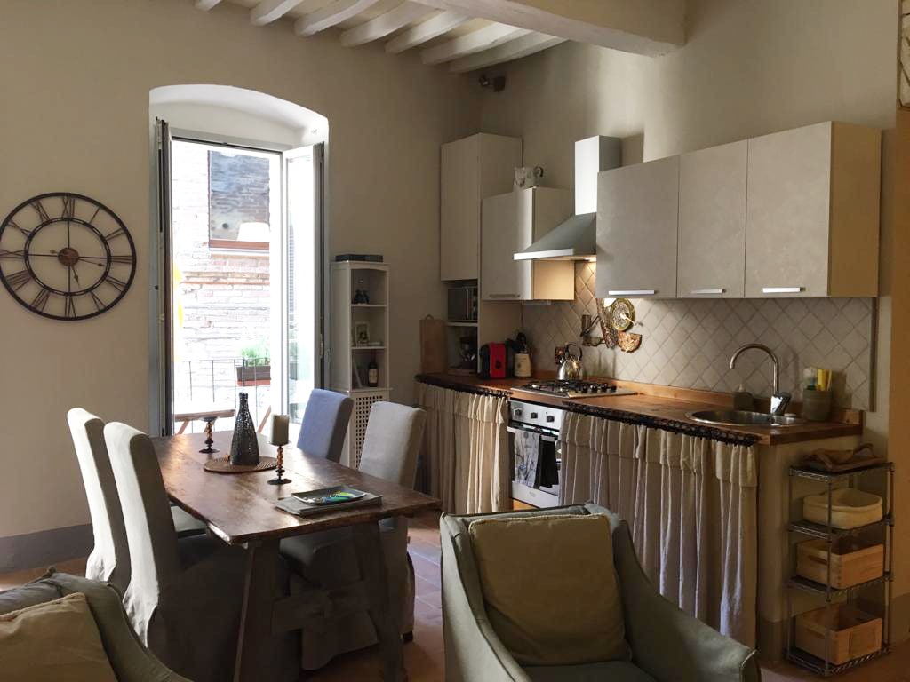 L'appartamento si trova al 2° ed ultimo piano di una palazzina medioevale, con affacci su San Pellegrino e Pianoscarano, luminosa, centrale e al tempo stesso silenziosa. Il panorama spazia fino al Monte Argentario, coronato da romantici tramonti. Lo stile è unico e provenzale con il pavimento in cotto chiaro, le pietre dipinte di bianco e le caratteristiche travi di legno...i dettagli sono come sempre ricercati per offrirvi il massimo della bellezza e del comfort.