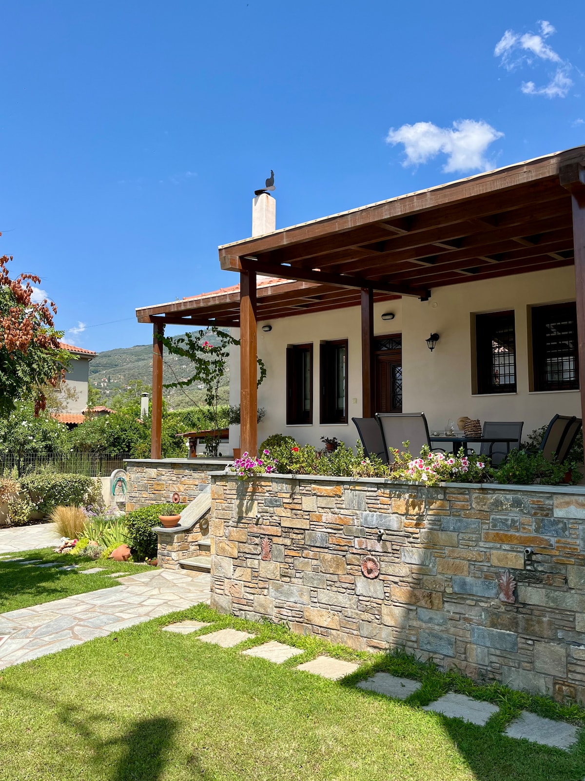 ♥♥♥Kick back and relax in this calm, stylish and luxurious apartment surrounded by a lush green garden. ♥♥♥ Rest assured that the all your needs will be met with a fully equipped kitchen and a large stone-built outdoors BBQ facility. A luxurious stay for your well-deserved unforgettable vacations in Skopelos!