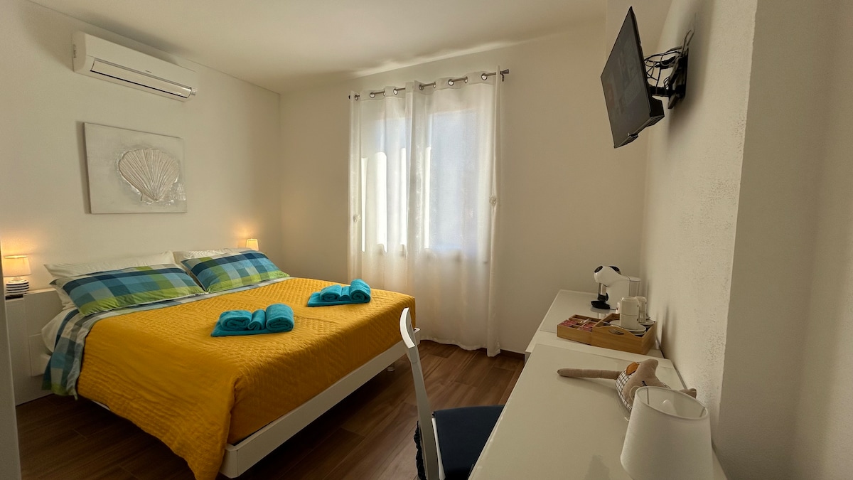 Splendido appartamento a 5 minuti a piedi dalla spiaggia, con una grandissima veranda vista mare, giardino privato con barbecue e doccia, 2 camere da letto con lenzuola incluse, di cui la matrimoniale con vista mare, una grande sala con angolo cottura con forno e fornelli, tostapane, bollitore e macchina del caffè. Culla e Seggiolone inclusi . Parcheggio privato, bagno con una ampia doccia in muratura. WIFI fibra 1GB/S. Smart TV ultima generazione con accesso Netflix gratuito.