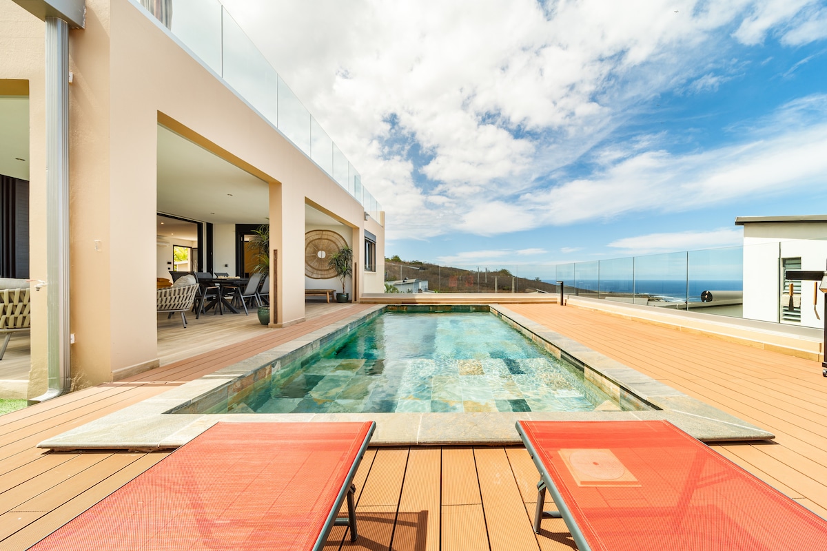 靠近海滩:私人游泳池+露台+360°景观