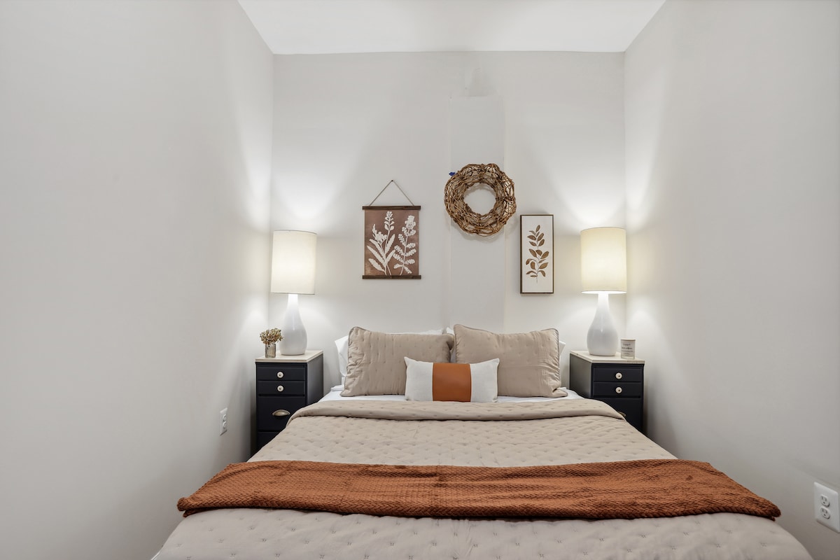 Immerse yourself in the charm of Fredericksburg's historic district with this captivating 1st-floor apartment with nearly 500 sqft, a group of up to 4 will sleep comfortably. Boasting a modern-boho style, this delightful space offers a large bedroom, full bathroom, & a fully-equipped kitchen that opens up to a spacious living and dining area. A large screen TV in the living space provides indoor entertainment after a night out! This is 1 of 3 of our apartment listings in the building!