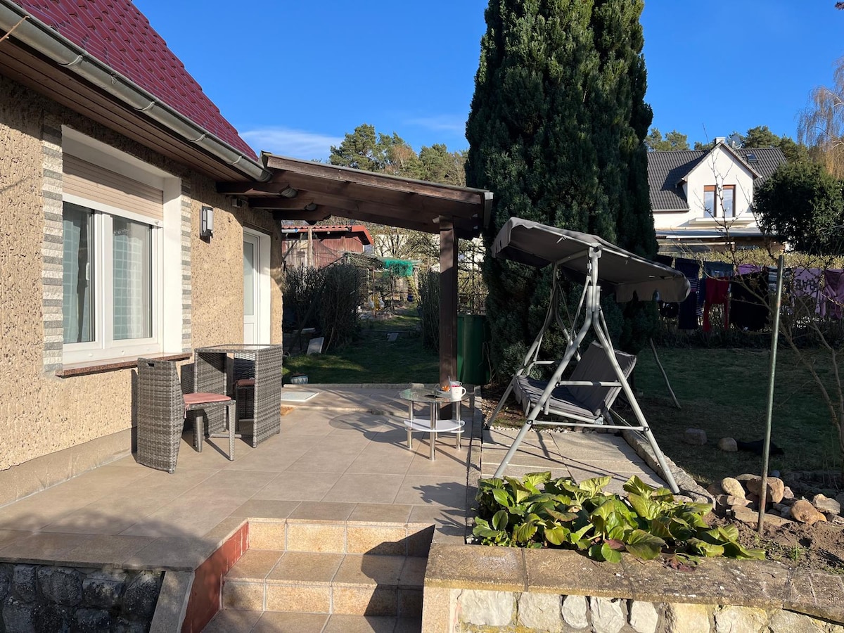 Experience unforgettable moments in this quiet and family-friendly accommodation. The modern house and the sunny terrace invite you to linger. The lido by the lake - a dream for children. Supermarkets are within easy reach. Car parks, bicycles and a canoe are available. Exploring the surrounding area or trips to Berlin, Potsdam and the surrounding countryside are easy from here. In winter you can relax in the steam shower. Your four-legged friend can also join you.