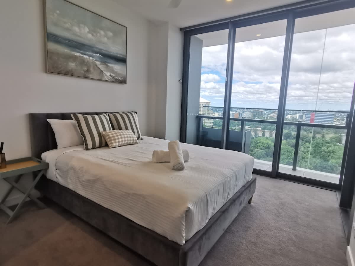 Unique and spacious 2 bedroom/2 bathroom apartment with a New York loft feel. Floor to ceiling windows cover 80% of the apartment giving you unobstructed views of Brisbane city, Brisbane river and the sunsets over Mt Cootha. Luxurious furnishings and full chef’s kitchen incl gas cook tops, two 75 inch smart TVs and luxurious bedding. The complex offers spa's, sauna, pool incl lap pool, gym, cinema room, and a 32nd floor rooftop with BBQ and spa. In the heart of West End, you walk to everything!