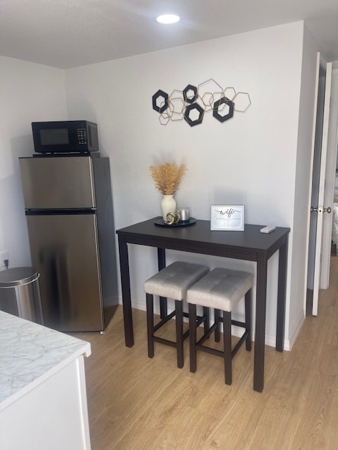 By heart of town conveniently close to many great amenities. Water & land adventures just minutes away! This cozy suite is super inviting & has all you may need for a comfy stay. Private entry with a large driveway parking. Open layout with en-suite bathroom&kitchenette. Windows for natural sunlight. Blue ambiance lights create an enjoyable atmosphere. New king hybrid mattress, seating &dining area, 55" smart TV, Free Wi-Fi + Streaming Apps. Mini fridge&freezer,microwave,coffee maker & more!