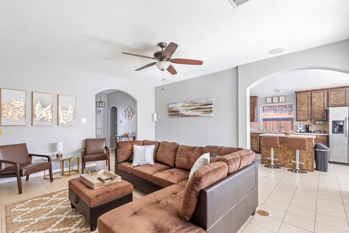 Enjoy a perfect getaway in a cozy, modern and updated house located on a lot of more than a 1/4 acre with a 9ft deep pool, wet bar, spa,grill and lounge area. Beautiful and colorful night lights with lots of privacy in pool and patio area. The house is spacious and comfortably sleeps 10 people . 😊 with state of the art brand new furnitures, beds and mattresses. House comes with all appliances including washer, dryer and 3 smart tv's and equipped with high quality linen and kitchen essentials.