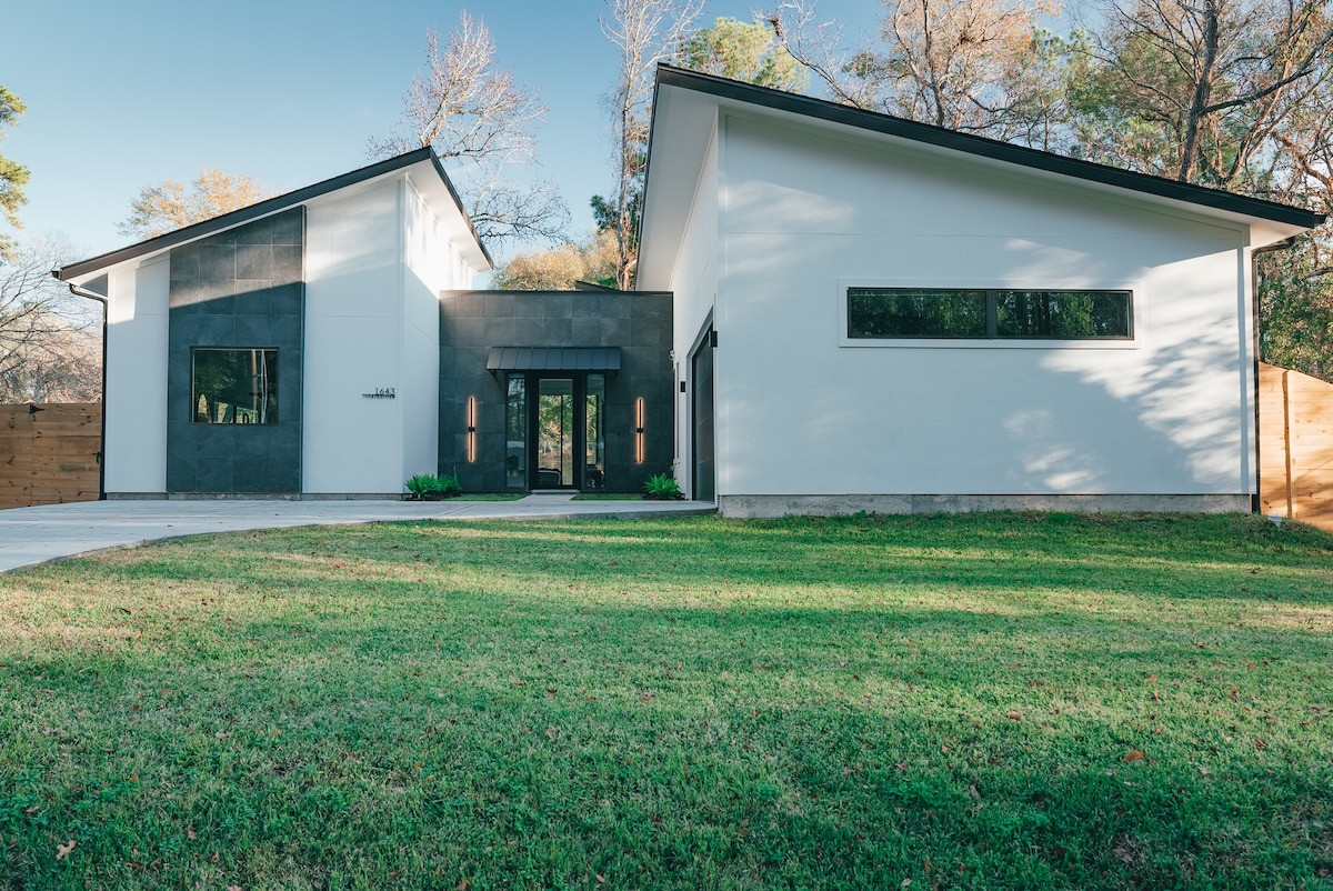 This unique place has a style all its own. Modern, Open-Concept Luxury Estate. Entire Home top to bottom Glass Sliders. Minutes away from all of The Woodlands Texas beautiful attractions. The perfect place to come and enjoy a luxurious stay by yourself or with friends, there is plenty of bedrooms with their own bathroom! Work from home in our dedicated built in workspace with beautiful woodland views. Create your own mood with the entire home being powered by Philips HUE Lights.