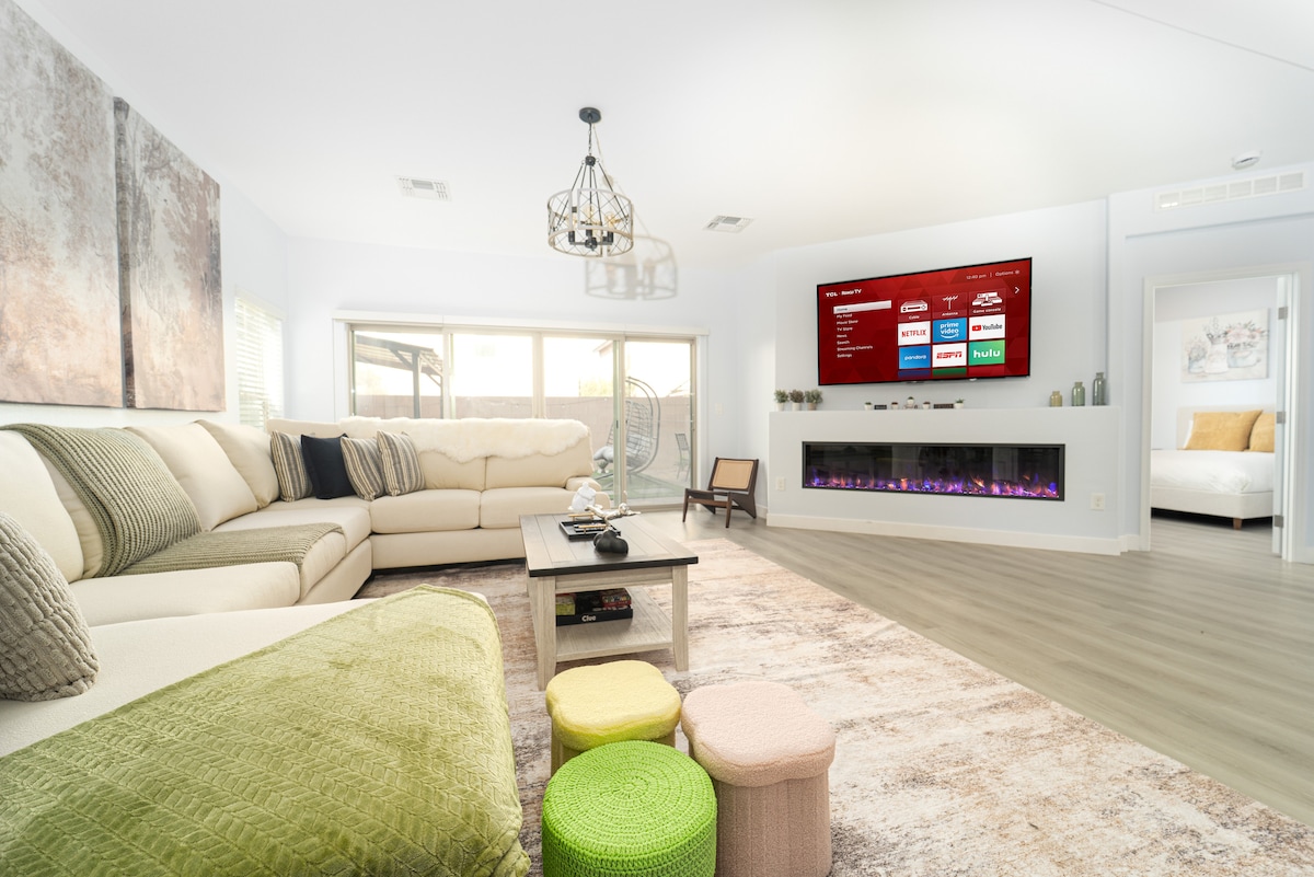 Welcome to our inviting Airbnb escape, a true retreat nestled just 16 minutes away from the dazzling Las Vegas Strip. With 2 specious bedrooms, a refreshing pool and modern amenities, our home offers the perfect blend of comfort, style and convenience. Our Airbnb is strategically located, providing easy access to a variety of nearby facilities and services. In close proximity you can find a well equipped gym, Whole Foods Market and for a quick and tasty bite, the famous In-N-Out.