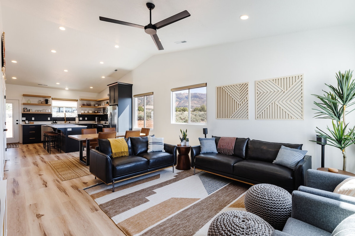 Zion NP's gorgeous peaks are just outside your window & the park entrance is only 1 mile away, making for the perfect hike or bike ride! This 1st floor space was renovated for those excited to wake up to beautiful views, explore during the day, return to cook in a full kitchen, have a nice meal, relax at the exquisite hand-carved wood bar, and enjoy the peaceful Zion evenings. The Watchman View Haven is the perfect place for a Family vacation, Friends trip, retreat, or an Adventurers' base-camp!