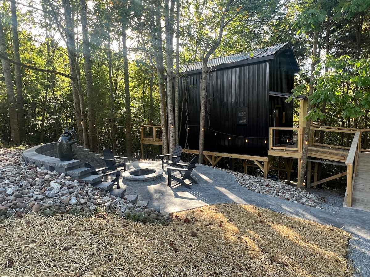 Privately nestled on over 5 wooded acres & intentionally curated for your stay. Gain access to quiet, immerse yourself in nature, support your rejuvenation, & to tap into your creative flow. Amenities include on-site hiking trail, artist work space, wood burning stove, covered porch, hammocks, outdoor dining, fire pit, moon garden, salt-water hot tub, & outdoor shower. Close to Beaver Lake & located along the Bourbon Trail, just minutes from Wild Turkey & Four Roses distilleries. (Note:18+only)