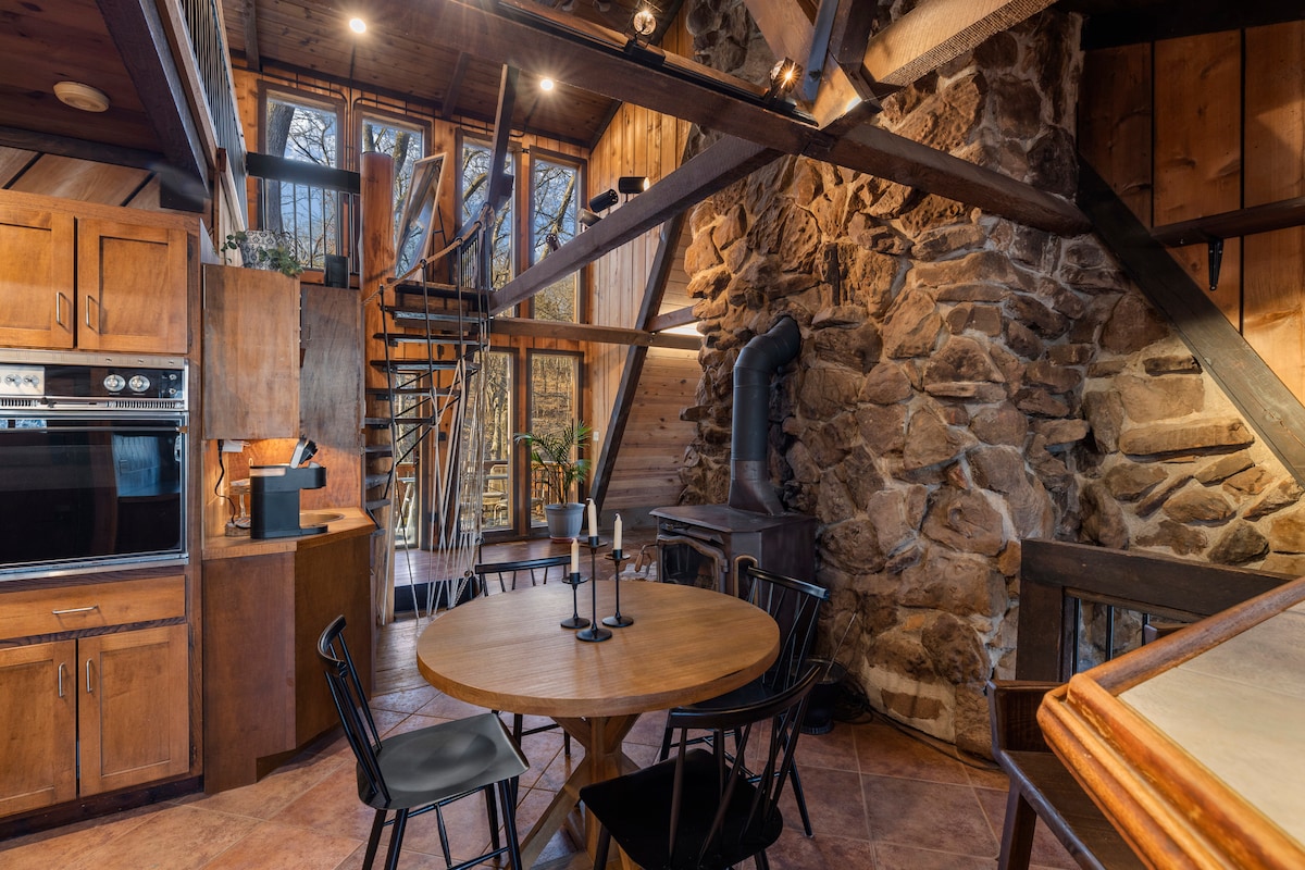Escape the hustle and bustle and retreat to our cozy treehouse nestled in the Ozark wilderness. Our one-of-a-kind cabin features 4 decks, 2 electric fire places, 1 wood stove, spiral staircase, indoor rock waterfall and hidden reading/painting nook. Enjoy the outdoors while relaxing in the hot tub taking in the serene view. Within 30 minutes of dining, bars, entertainment, Table Rock Lake, amusement parks and more!