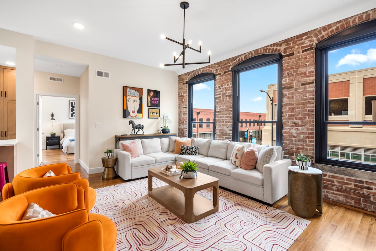 Welcome to your dream getaway! This stunning brand-new modern loft blends contemporary design with cozy comfort. Located in a vibrant neighborhood, it offers an unforgettable experience. Enjoy an open-concept living area with large windows, exposed brick, high ceilings, a fully equipped kitchen, stylish bedrooms, luxury baths, and curated design elements throughout. Perfect for relaxing or entertaining—your ideal retreat awaits!