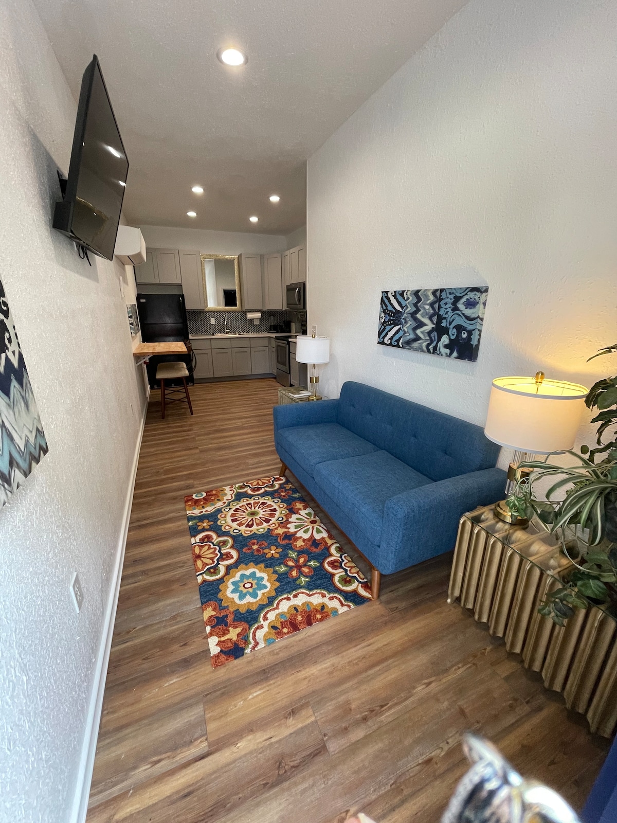 You'll be close to all that makes central Springfield unique in this colorful, vintage Rountree apartment, remodeled for comfort and style. Plush beds, a full kitchen, outdoor hangout space, and artistic touches make this cozy spot perfect for a family weekend, a romantic getaway, or a college visit. Close to the great shops and eateries of Pickwick & Cherry, and a walk or short drive to downtown, you can stroll the gorgeous Rountree neighborhood and enjoy the many old trees and houses nearby.