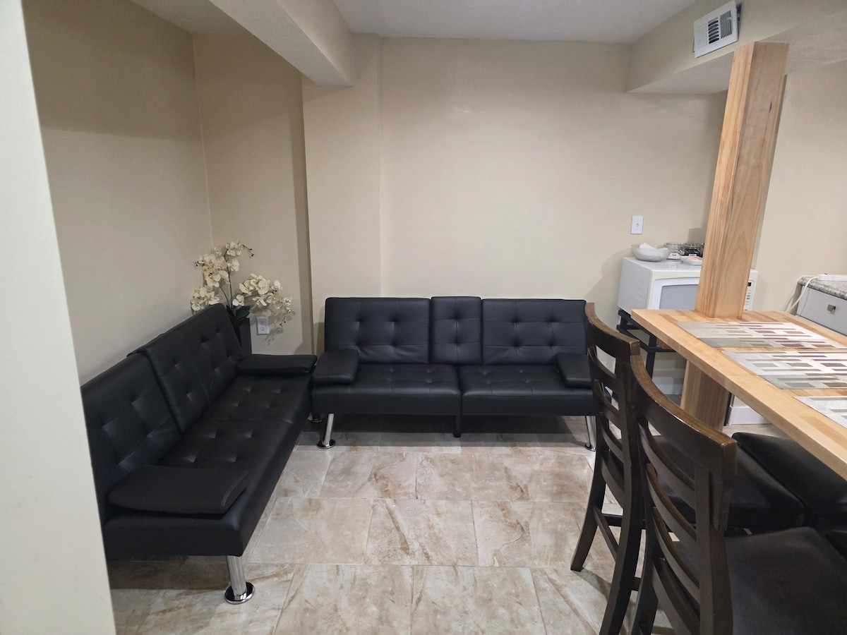 Step into a private and cozy space. Relax watching TV in bed or on the couch. This place is part of our walk out basement, so you may hear day to day living upstairs. For your safety there is a Ring camera installed at the entrance and will light up the entryway when it’s dark. Parking is on the well lit public street. Easily walk up our dedicated Airbnb sidewalk, no steps, walk around to the back of the house. You’ll be in a serene space that makes you feel right at home.