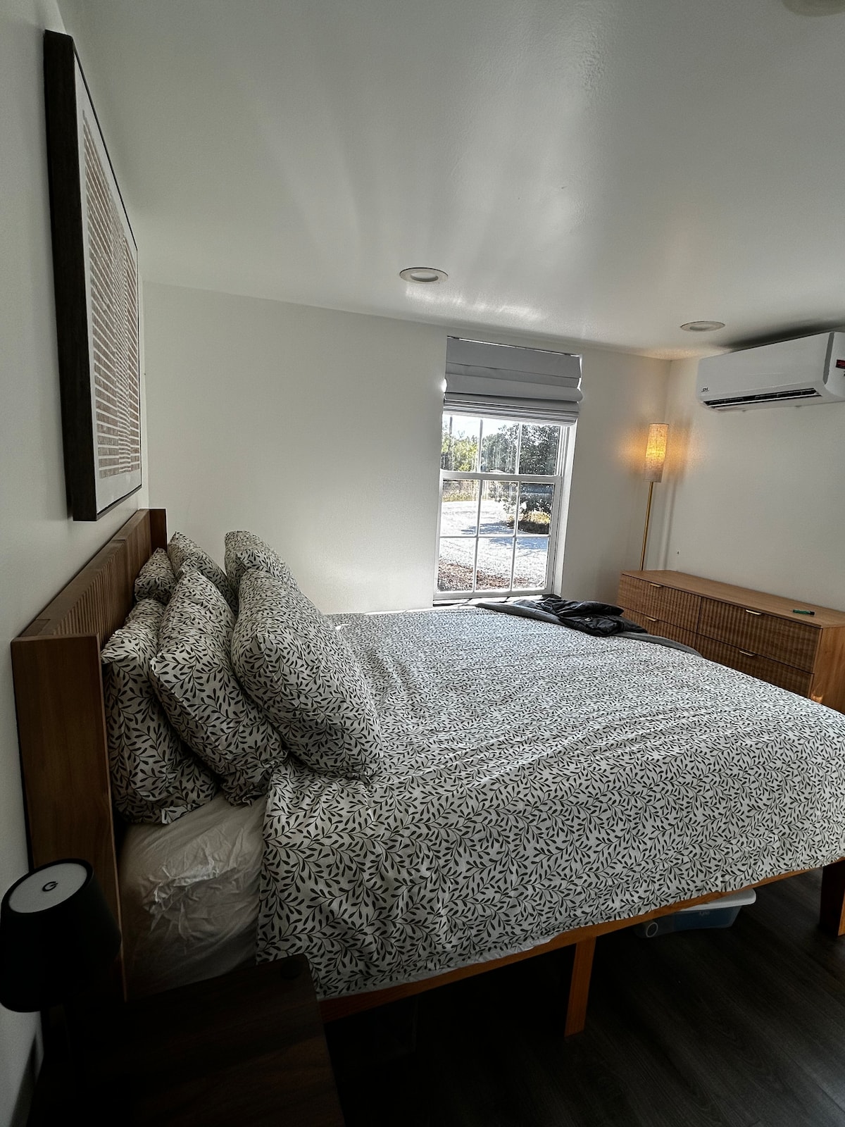 Tucked away in a serene and secluded tree-surrounded area. Fully equipped kitchen, complete with a fridge, stove, and all the essential cookware. Large windows invite an abundance of natural light. A smart TV in the living room and bedroom to stream your favorite shows and movies. One bathroom with a full shower; a bedroom including a king-size bed and a loft with a queen-size bed. A spacious private deck to enjoy a morning cup of coffee or unwind with a glass of wine in the evening.