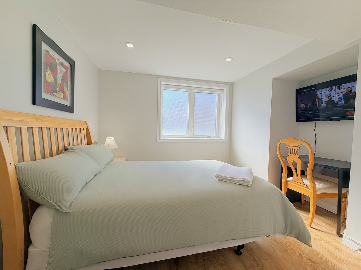 Welcome to The Hideout – Your Cozy Garden Escape 🌿✨ The Hideout is a stylish one-bedroom, one-bathroom garden suite designed for comfort and relaxation. Thoughtfully decorated in calming blue and warm brown tones, with elegant gold accents, this inviting retreat blends modern sophistication with a warm, homey atmosphere. Whether you’re here for a weekend getaway or a short stay, The Hideout is perfectly situated just minutes from Barrie’s downtown, waterfront, and local attractions.