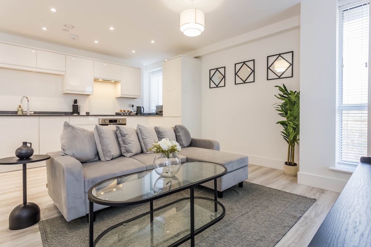 Experience luxury and charm in our newly renovated 2-bed Gateshead retreat | A1 Access, Scenic Walks, Local Pubs Relax in the cosy living room with a plush mustard corner sofa, faux log burner, and 50-inch smart TV. Enjoy 2 bedrooms, including a king-size and single bed with pullout. Explore doorstep scenic walks and indulge in local pub delights. Direct bus to Newcastle city center or a quick 15-min drive. Beamish Museum, 15 mins away—get an annual pass! Relax with free parking. Book now