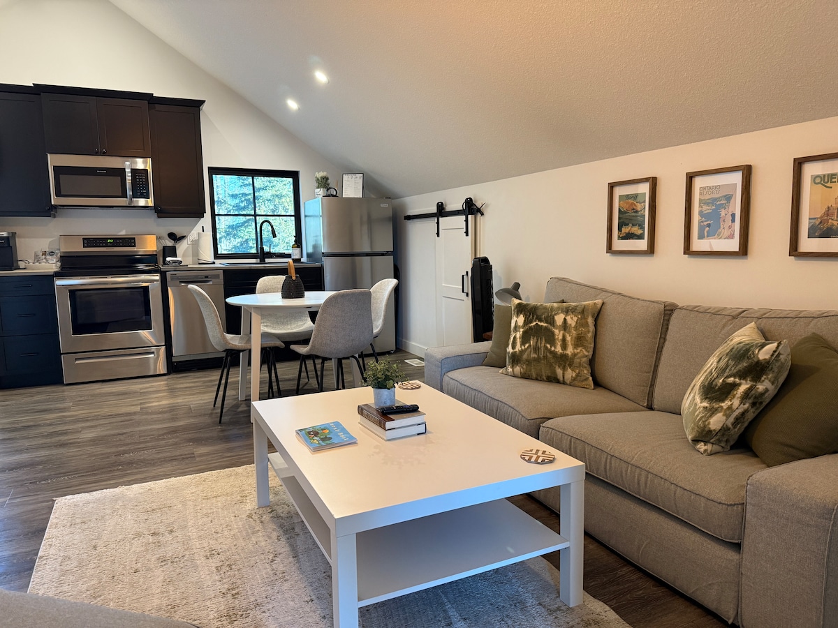 NO AIRBNB SERVICE FEES! Our newly-renovated and romantic NYC loft-inspired basement suite offers over 1000 square feet of luxurious living space. With its high ceilings, floor-to-ceiling glass walls and French doors, and cozy in-floor heating, you'll feel like you're in a real loft. The high-end kitchen and bathroom add a touch of sophistication, and the 90s Simpsons arcade game provides hours of entertainment. Book your stay with us and experience the luxury and comfort of our suite.