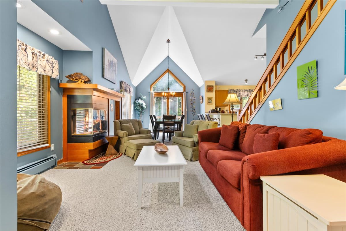 This log cabin tiny home is located right in Campton Village. It is clean, and very bright and cheery thanks to the floor-to-ceiling window that overlooks the Mad River. Includes a SMALL kitchenette (not recommended for those serious about cooking nightly feasts) and a locked outdoor storage space for skis and outdoor equipment. Small 2-person hot tub. WiFi. Level 2 EV charger on site (extra fees apply). 5 min walk from a craft brewhouse, grocery store, a vintage arcade and candy store.