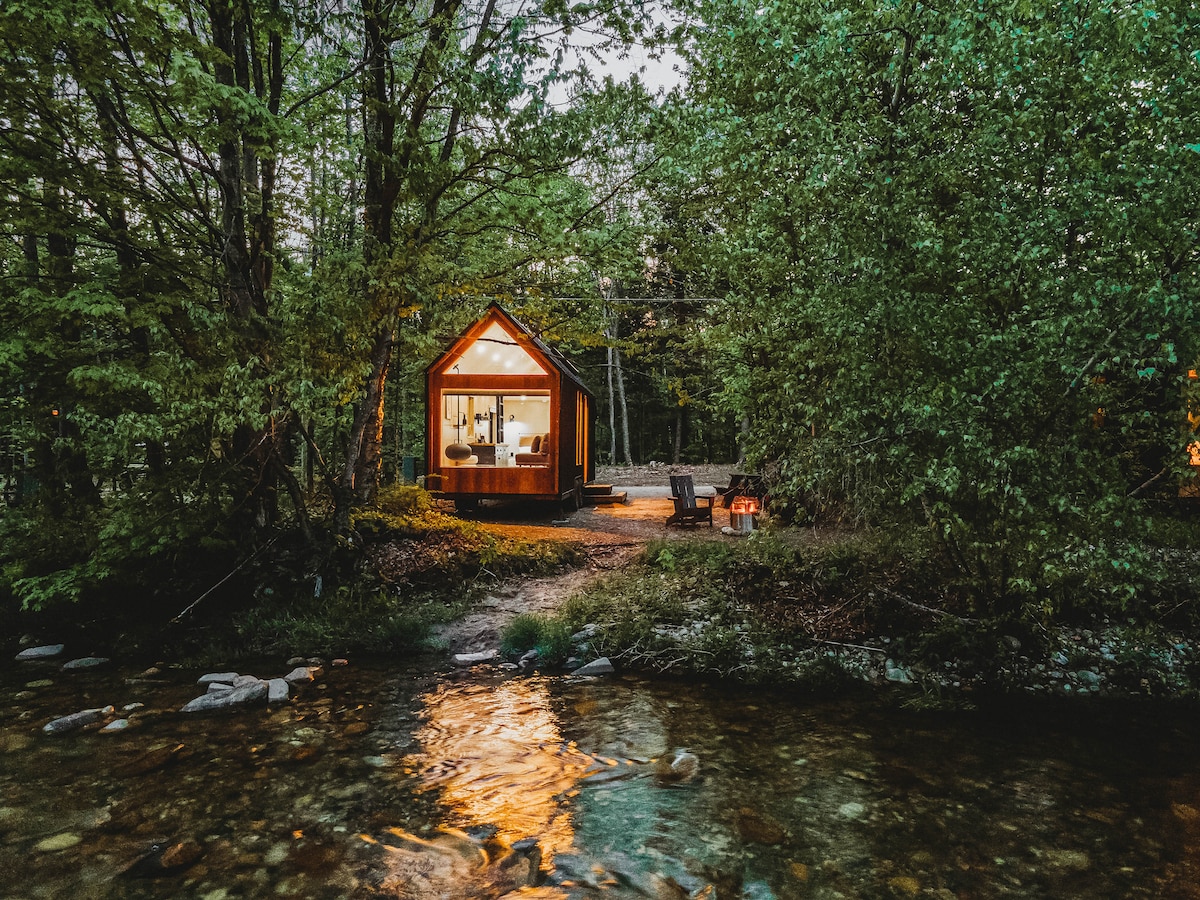 Cliff House is one of 5 luxurious tiny homes that make up Littlefield Retreat, a tranquil woodland village of 3 treehouses and 2 hobbit houses – each with its own private hot tub and dock. To see all five dwellings, click on the photo to the left of “Hosted by Bryce”, then click “Show more…”. This 15-acre forest retreat on Littlefield Pond offers our guests an experience that feels like a trip up to the woods of northern Maine, but is closer to home and to all the attractions of southern Maine.