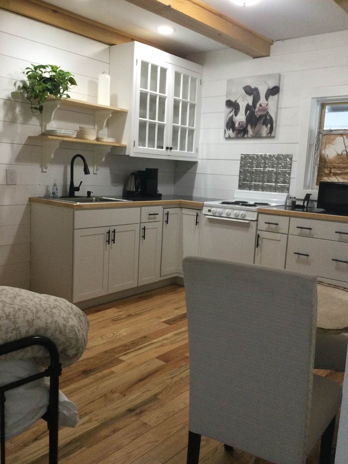 Renovated modern farmhouse studio in the White Mountains. We are the 4th generation in our family’s home. Posts and beams with new kitchen, shiplap, hardwood floors, and large bathroom, and great view overlooking the fields. 36 acres of field, woods, and cut your Christmas Tree here. If lucky you will catch a glimpse of the horses in the field. Close to hiking, skiing, and lakes. Waterville Valley 9 miles, Loon Mtn. 15 miles. Owls Nest Golf Couse. Private entry /private studio.