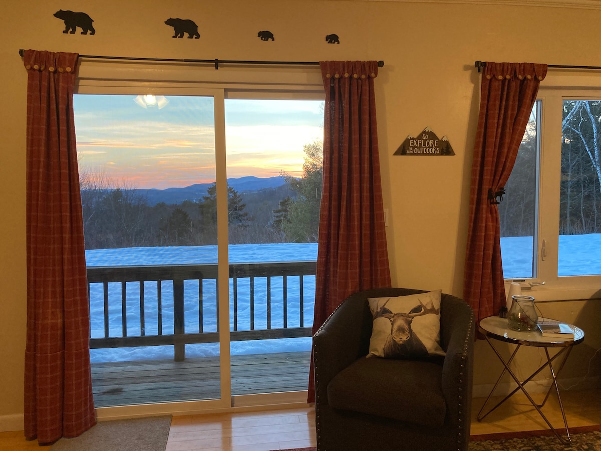 Escape, relax and enjoy White Mountain views and postcard quality sunsets from our cozy mountainside condo. Bordering the White Mountain National forest with over twelve hundred miles of hiking trails. We are minutes from New Hampshire's world famous outdoor playground. Ski, snowboard or tube at one of three ski areas within a 25 minute drive; Waterville Valley, Loon and Tenney. We humbly invite you to come and stay, unwind and make friends with yourself again.