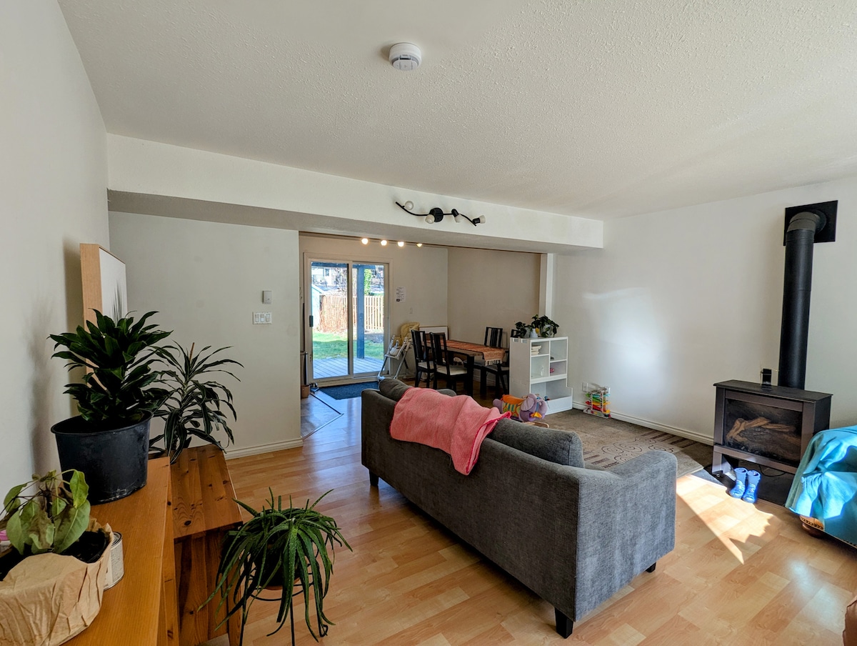 Brand new suite with a kitchenette including toaster oven, coffee machine , fridge... Heated floors , fireplace makes it really cozy. Coffee and tea is there for you .to use . Step away from the biking and hiking trails , close to climbing , kite. 40 min from Whistler. storage for skis , bike... We live upstairs and you will hear some noise during the day..