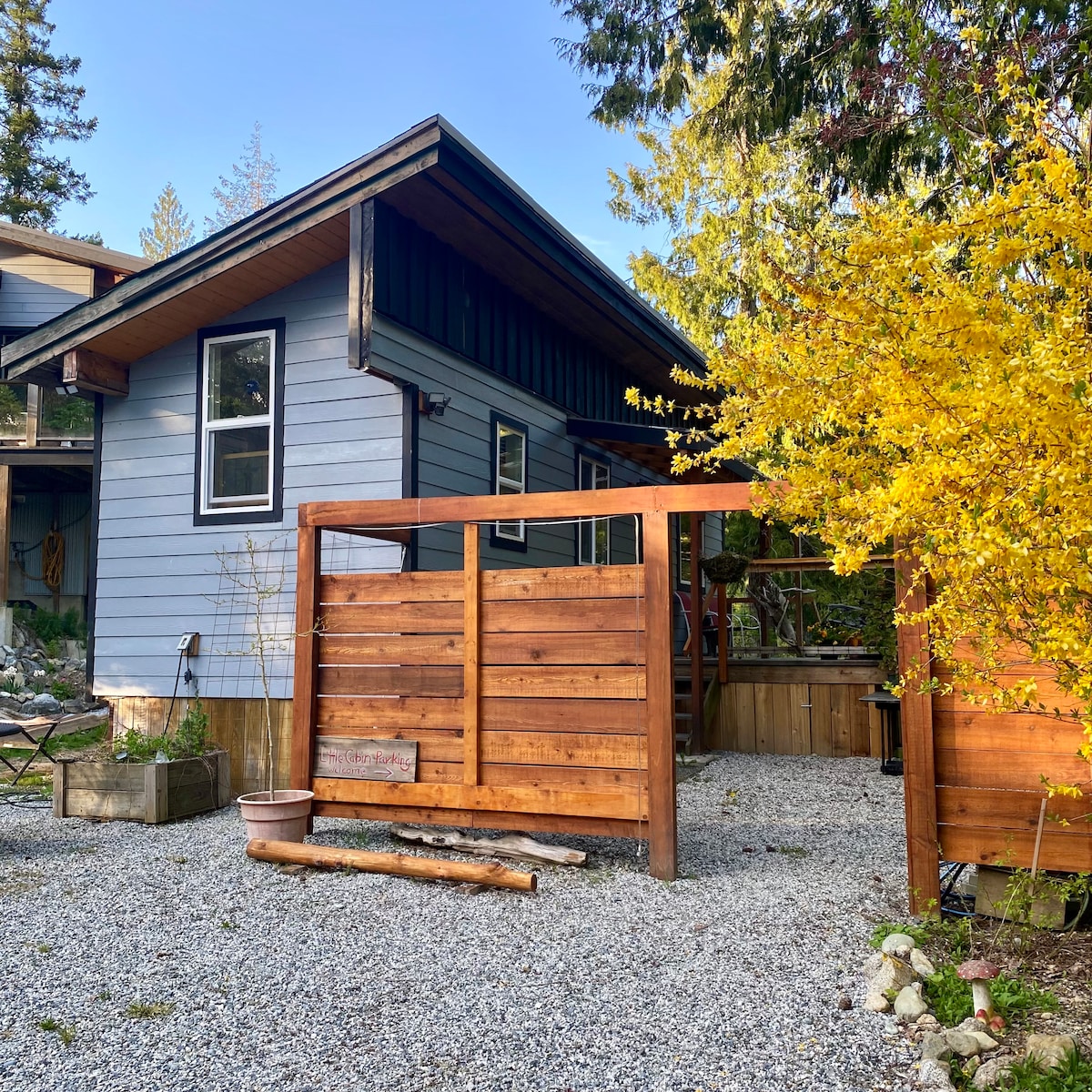 Quiet, private, clean and well appointed. Make yourself comfortable in this charming space. Everything you need to feel at home including kitchenette, oversized bathtub, queen bed and cozy outdoor seating area. Parking at the door with EV plug and covered outdoor storage space for your gear. Situated in a lovely neighbourhood cradled by Sechelt Inlet and old growth forest with park trails to explore across the street and kayak launch down the hill. 5 minute drive to Sechelt Village.
