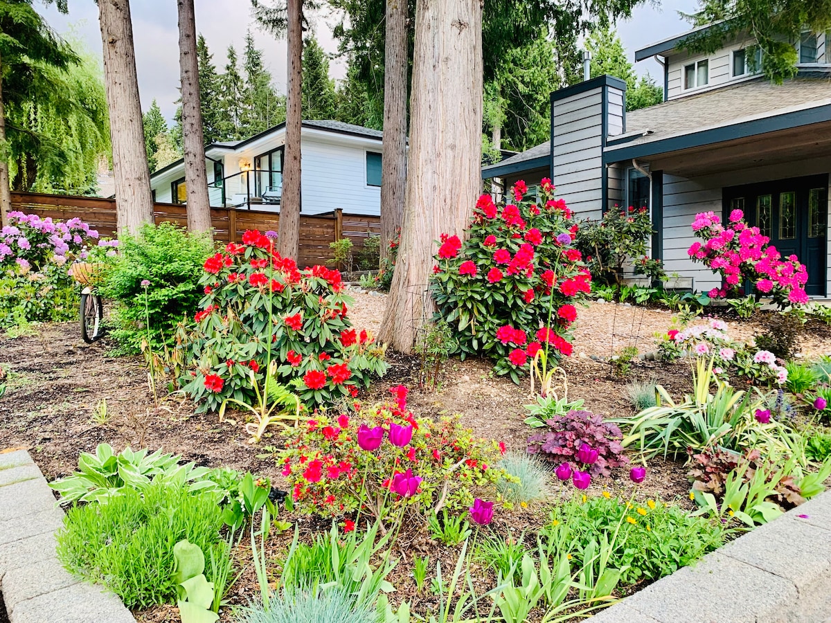 New remodeled house 30-minute drive to Whistler Village - North America's #1 Sking & Biking resort. Head to the river behind the house & watch the eagles, foxes, birds, and owls. Cook your favorite meal in the fully equipped kitchen sporting designer cabinetry, stainless steel appliances, BBQ, Keurig espresso machine, and more. Decor of outstanding pieces of local artworks, a record player & vinyl collection, guitar, ukulele. Cozy fireplace lounge, 64" TV, premium cable, Netflix & hi-speed Wi-Fi