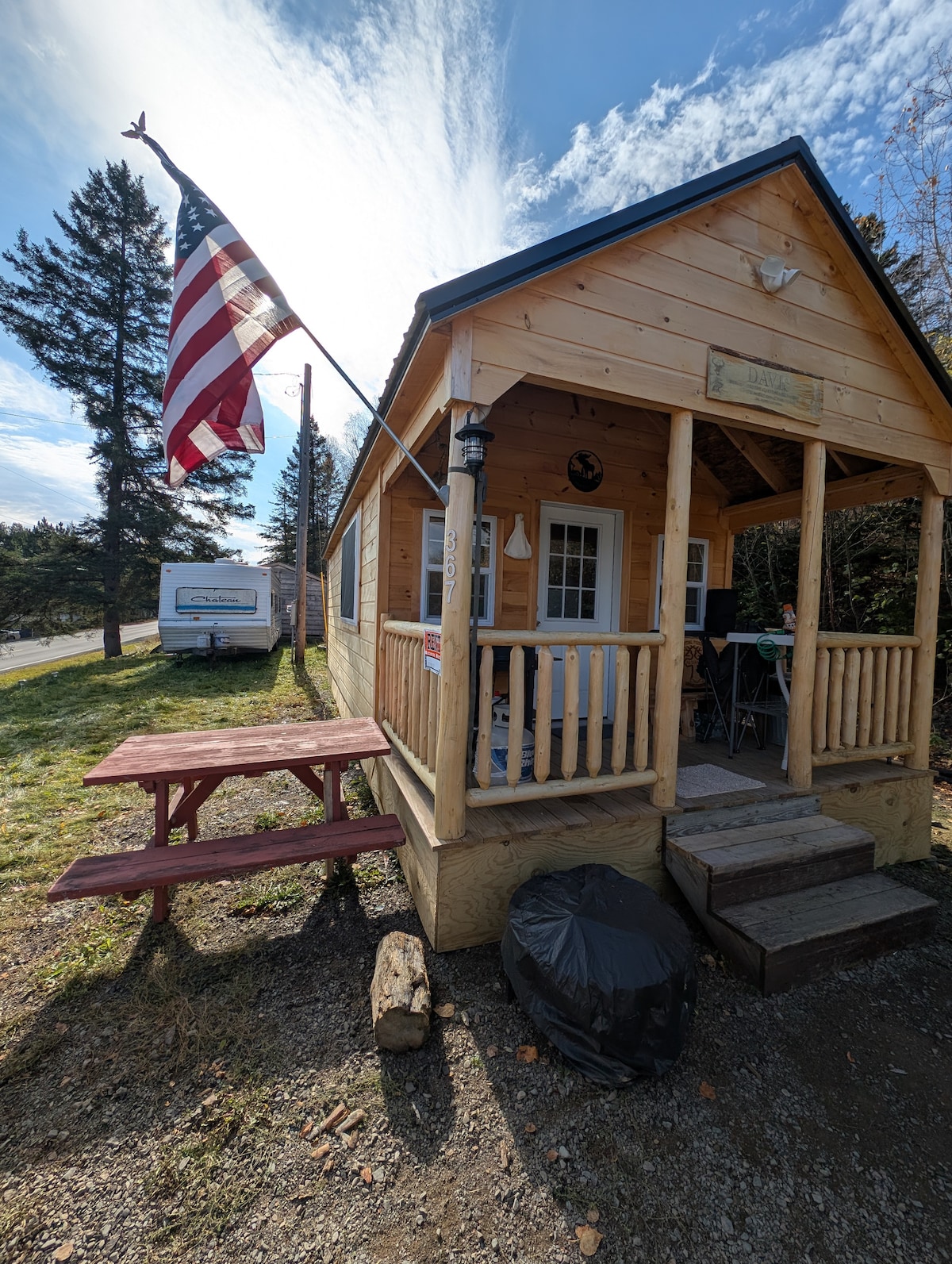 Come and see what Tiny Home living is all about! This cute little cottage is nestled along a big apple tree. Our rustic queen bed cabin is a cute, relaxing little getaway for two with a big screened in porch. We're located along the main ATV trail, just pull right in! There are thirty-seven acres with hiking trails throughout, and Big Brook borders one side of the property. Enjoy our Northern Maine getaway!