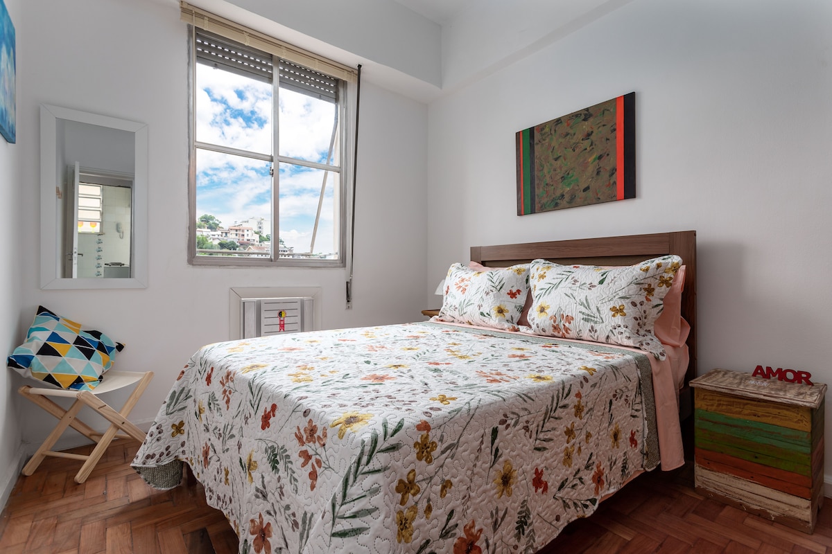 FLAT RIO - Kit net aconchegante, com cama de casal e sofá cama de solteiro. Ar condicionado, Internet com Wi-Fi, Smart TV 32" com Netflix e Globoplay. Cozinha equipada com fogão, geladeira, micro ondas, air fryier, sanduicheira, liquidificador, cafeteira expresso. Prédio familiar em rua silenciosa na quadra da Praia do Flamengo com portaria 24 h e câmeras de monitoramento. Metrô Largo do Machado na porta. Perto de bares, restaurantes, supermercados. Fácil acesso as praias e centro pelo metrô.