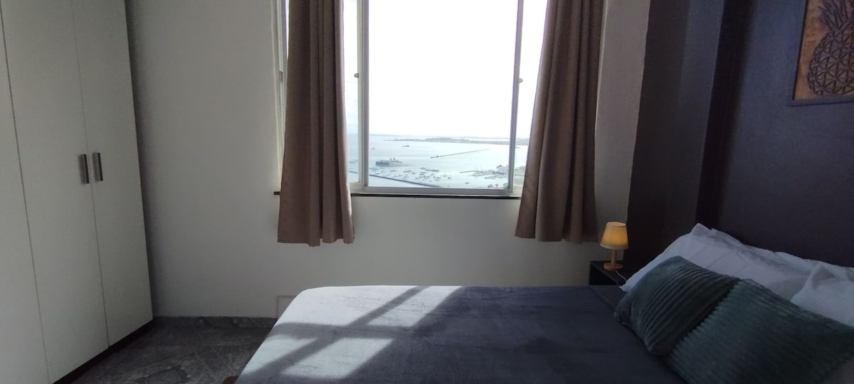 Lovely apartment with stunning ocean views, overlooking Salvador's main landmarks. From the balcony, besides the beautiful view of the All Saints Bay, you can admire the Bahia Marina, the Lacerda Elevator, the Solar do Unhão, and the São Marcelo Fort. The space is elegantly decorated, with environments equipped with everything you need, including a balcony with magnificent views. The bedroom features a comfortable queen-size bed, while the living room has a double sofa bed.