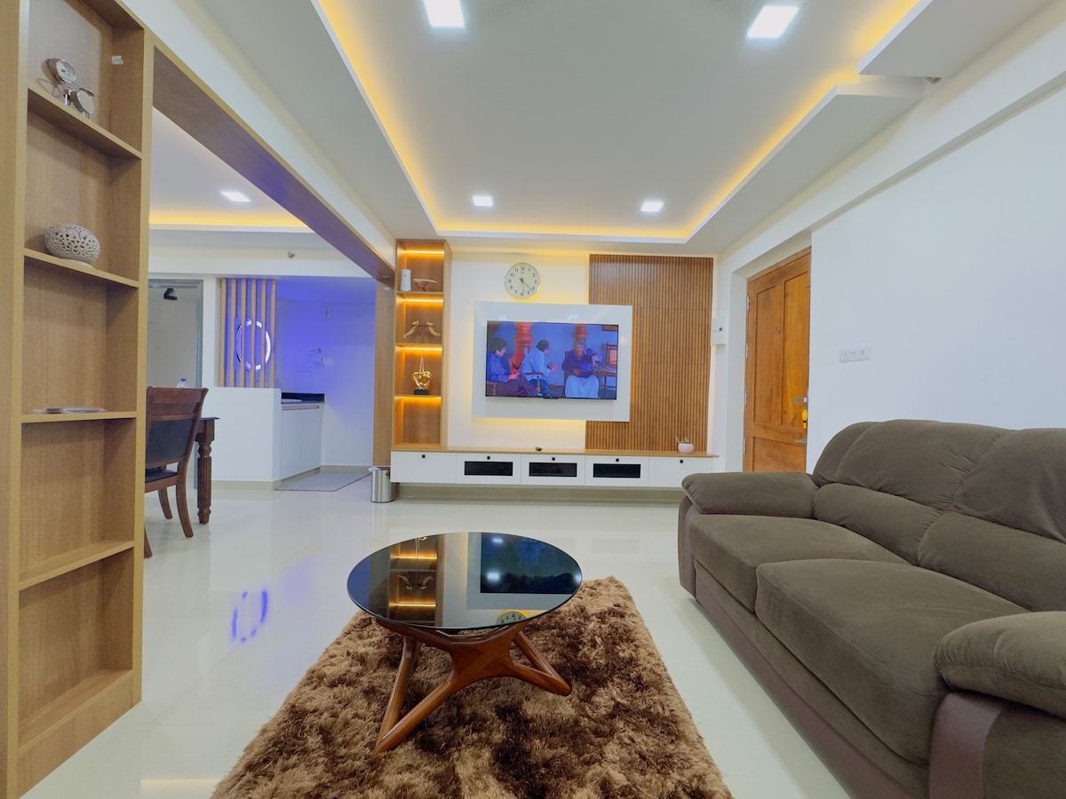 Welcome to your serene home-away-from-home in the heart of Trivandrum! just a short walk from the iconic Sree Padmanabhaswamy Temple. The Space: 1 Bedroom with King size bed Living area with sofa cum bed & TV Bathroom with hot water Fully equipped kitchen Why You'll Love It: Walkable distance to the temple Easy access to local shops, restaurants, and public transport Perfect for solo travelers, couples, or small families Book now and enjoy a peaceful stay @ Trivandrum’s cultural heart!