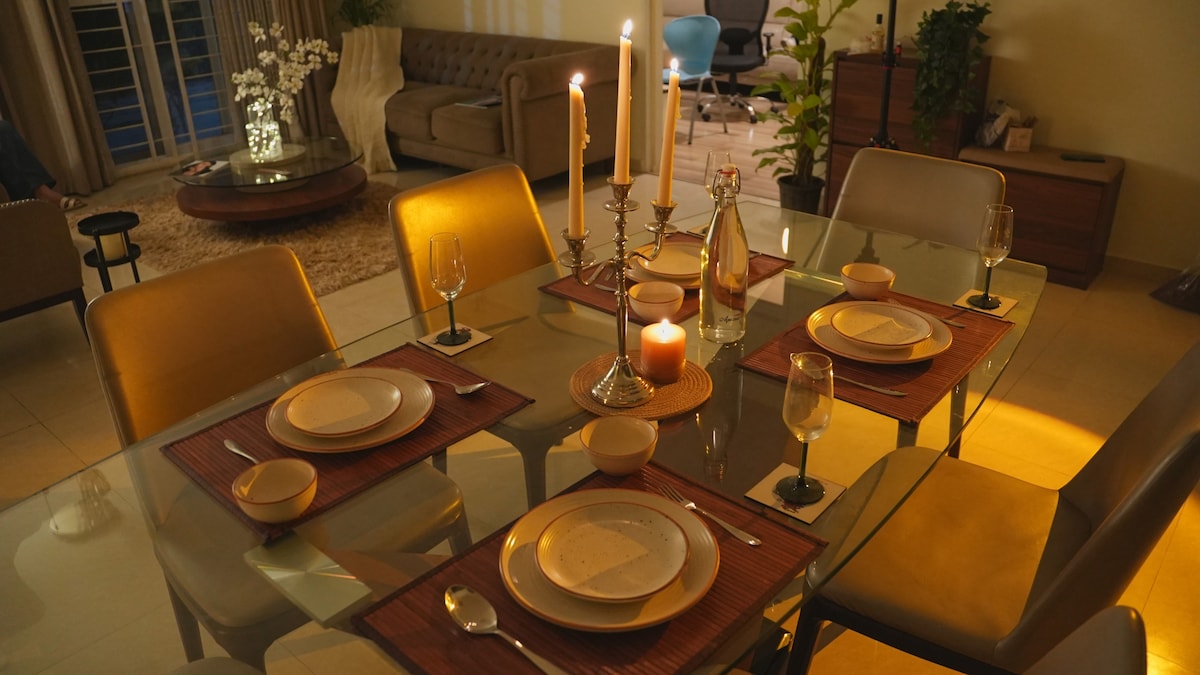 Welcome to our Lakeview apartment! Experience modern comfort in Bangalore's serene setting. Relax in our cozy 2 BHK flat with AC (in one bedroom). Enjoy seamless streaming with 100mbps WiFi. Enjoy the convenience of free car parking, available inside the premises, making your commute effortless. Indulge in complimentary tea and coffee, and rest on premium mattresses with quality linens. Shampoo and body gel are provided for a worry-free stay. Enjoy comfort and convenience at its best!