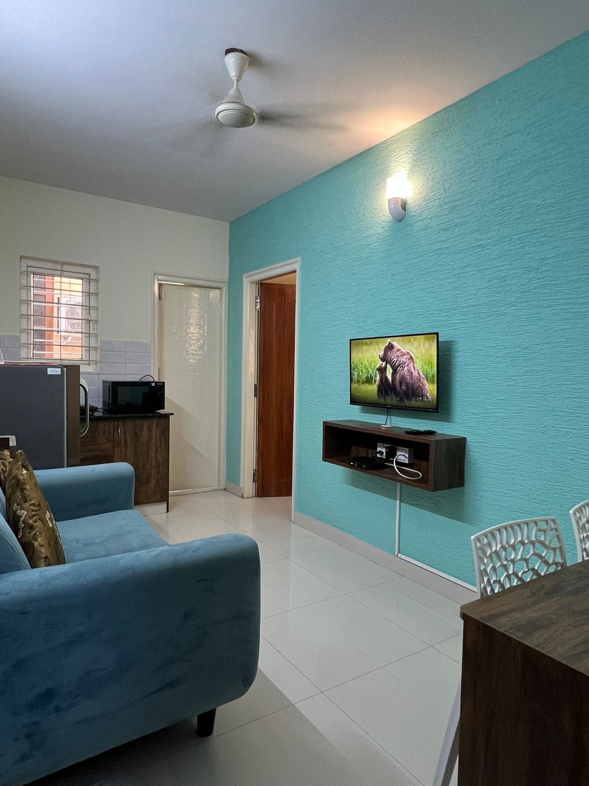 Spacious 600 square feet Designer 1BHK Suite with Private Balcony | High-Speed fibre optic Wi-Fi & Smart TV with streaming platforms, Work/Dining Desk, 24/7 power backup for uninterrupted work and comfort |Luxe King Bed & Orthopaedic Mattress ,wooden wardrobes for storage | fully equipped Kitchenette | Couch Bed in living room , Max.Occupancy 4 | Elevator access, professional housekeeping and access to paid laundry on site for long stays| Located in Central Bangalore | LGBTQIA++ Affirmative