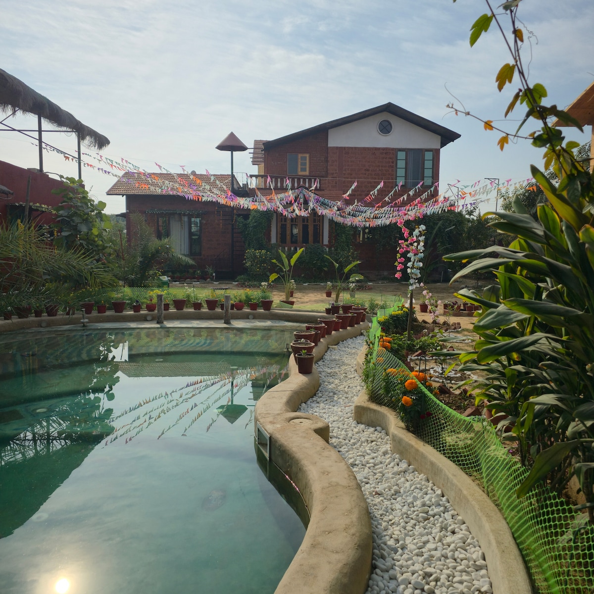 Punjab Village Farm: This independent cottage is located within a beautiful farm stay, just a 90-minute drive from Amritsar city. Nestled in the picturesque countryside, the property offers an authentic experience of rural Punjab. It provides a tranquil escape from the noise of busy cities and crowded tourist spots. The cottage is designed in a traditional mud house style and features well-furnished interiors with high-quality furniture, colonial-style lighting, and modern bathroom fixtures.