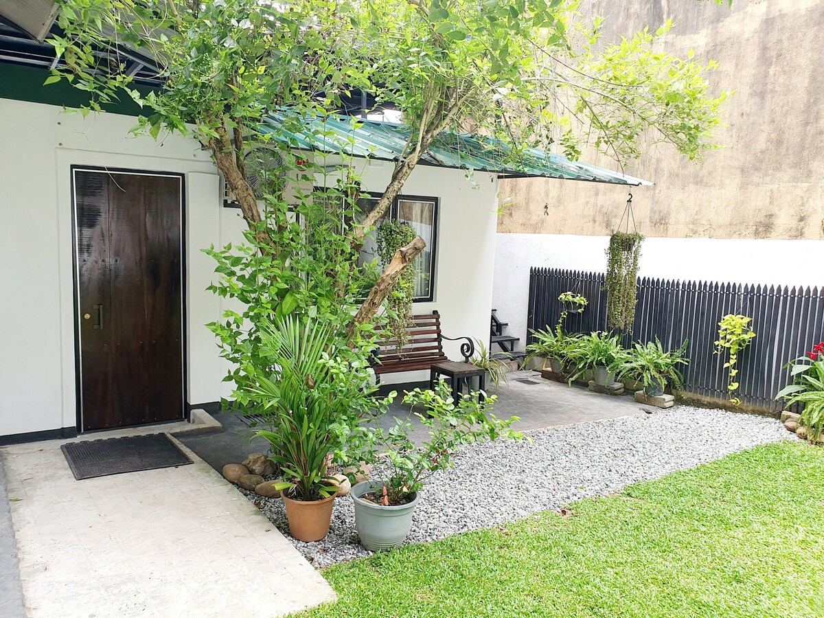 Newly upgraded, beautiful ground floor cottage, ideal for senior citizens or solo Travellers who prefers warmer climates. The cottage is surrounded by lush greenary and a natural grass lawn. It consists of a large room, ensuit bathroom and a tiny kitchenette where you can make tea and heat your food. The cottage is centrally located within walking distance to the Nugegoda city centre, cafes, restaurants, public transport and a 18 minute drive to the business hub of Colombo.