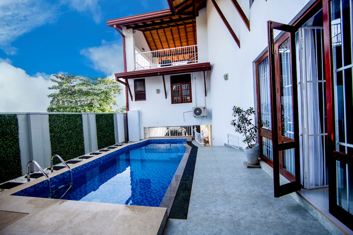 Our Villa blends modern luxury and traditional comfort, offering tranquillity in the city's prestigious neighbourhood, Kotte/ SL Parliament. A private oasis with an exclusive pool, a spacious living room with a panoramic view, an elegant dining room with a functional kitchen, and a wellness yoga room. 3 luxury bedrooms with 3.5 bathrooms provide comfort and privacy. Benefit from personalised service with 24/7 staff and secure parking. Our Villa is perfect for a luxurious and tranquil escape.
