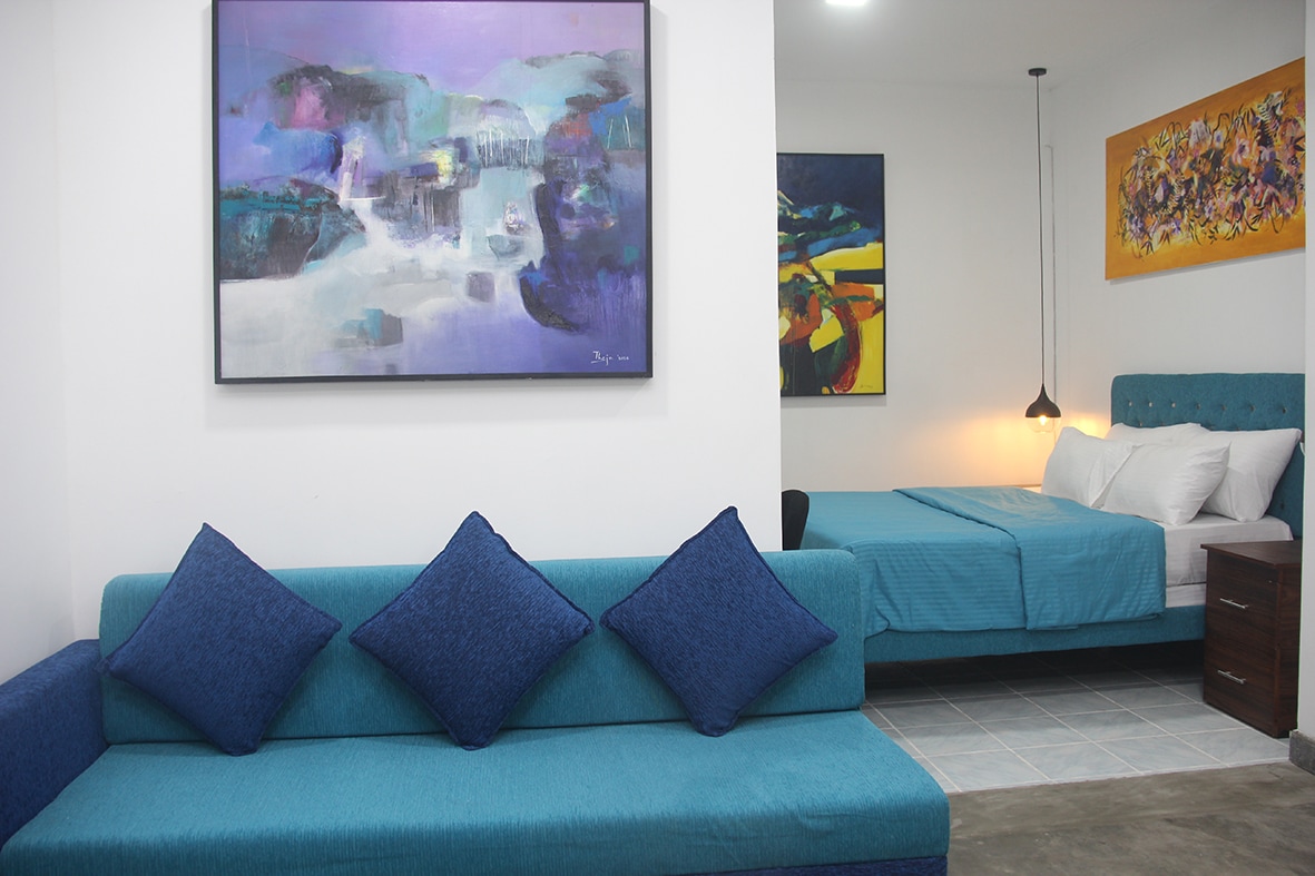 Living with Art at Art Gallery is the first of its kind accommodation in Sri Lanka. We Sudath and Achala are senior artists who host you with love and care in a friendly family environment. This is a entire apartment with a private entrance . You can relax your mind, body and the soul when you are living with Art. If you are an artist, we can arrange our private art gallery FREE for your art exhibition. You can enjoy can enjoy a life re-treat in Art gallery stay irrespective of the profession.