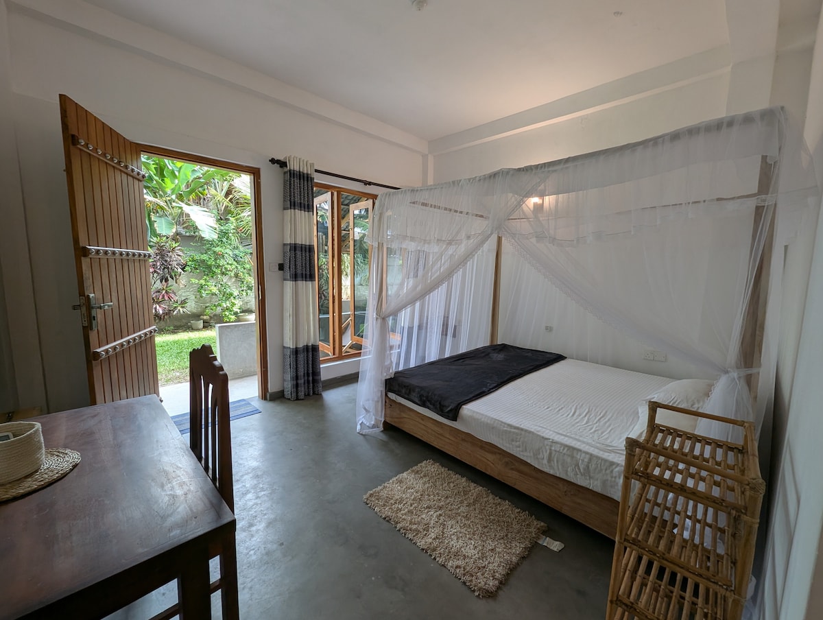 Experience comfort at Astro Villa’s first-floor suite, featuring an A/C bedroom, private kitchen, and bathroom. Relax on the balcony and soak in the tropical vibes, just a short distance from Weligama’s hotspots like Marriot, W15, and Kurumba Bay. Perfect for couples or solo travelers, this stylish space offers free Wi-Fi, parking, and a cozy ambiance. Whether you’re here for surfing, dining, or simply unwinding, this private getaway ensures a hassle-free and memorable stay.