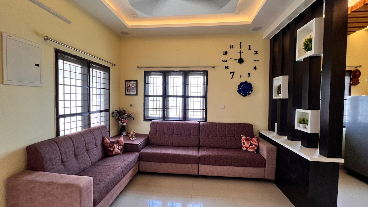 Newly Renovated Full furnished cozy 3BHK ( First Floor)Home in Trichy- Perfect for family, friends or an business trip .Features spacious Living room , 3 comfy AC bedrooms and modern baths, High-speed Wi-Fi, Ro water, Security cameras, parking , self check-in Comfortably sleeps up to 8 Adults & 2-4 kids. Close to major attractions Srirangam, Tiruvanaikovil, Samayapuram, Airport, Railway station, New panjappur busstand. Property is clean , secure and ideal for short and long trips