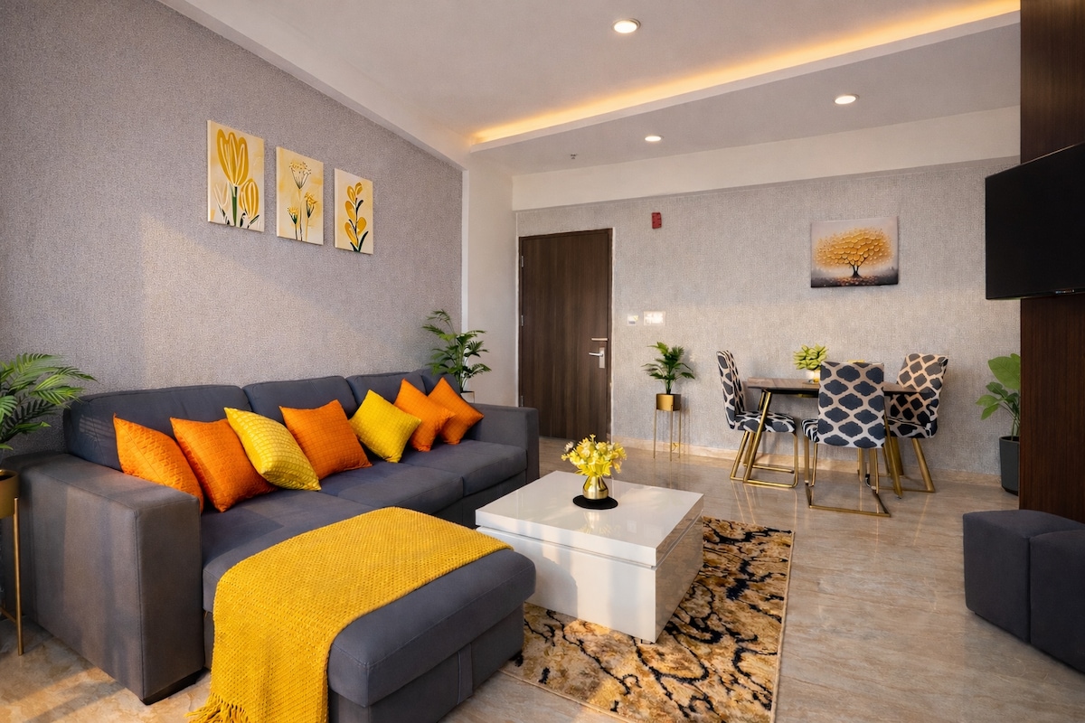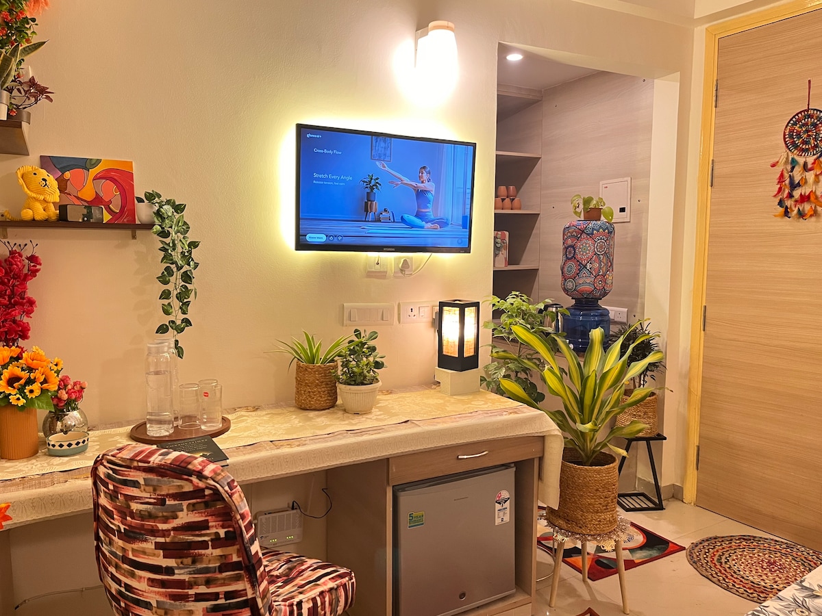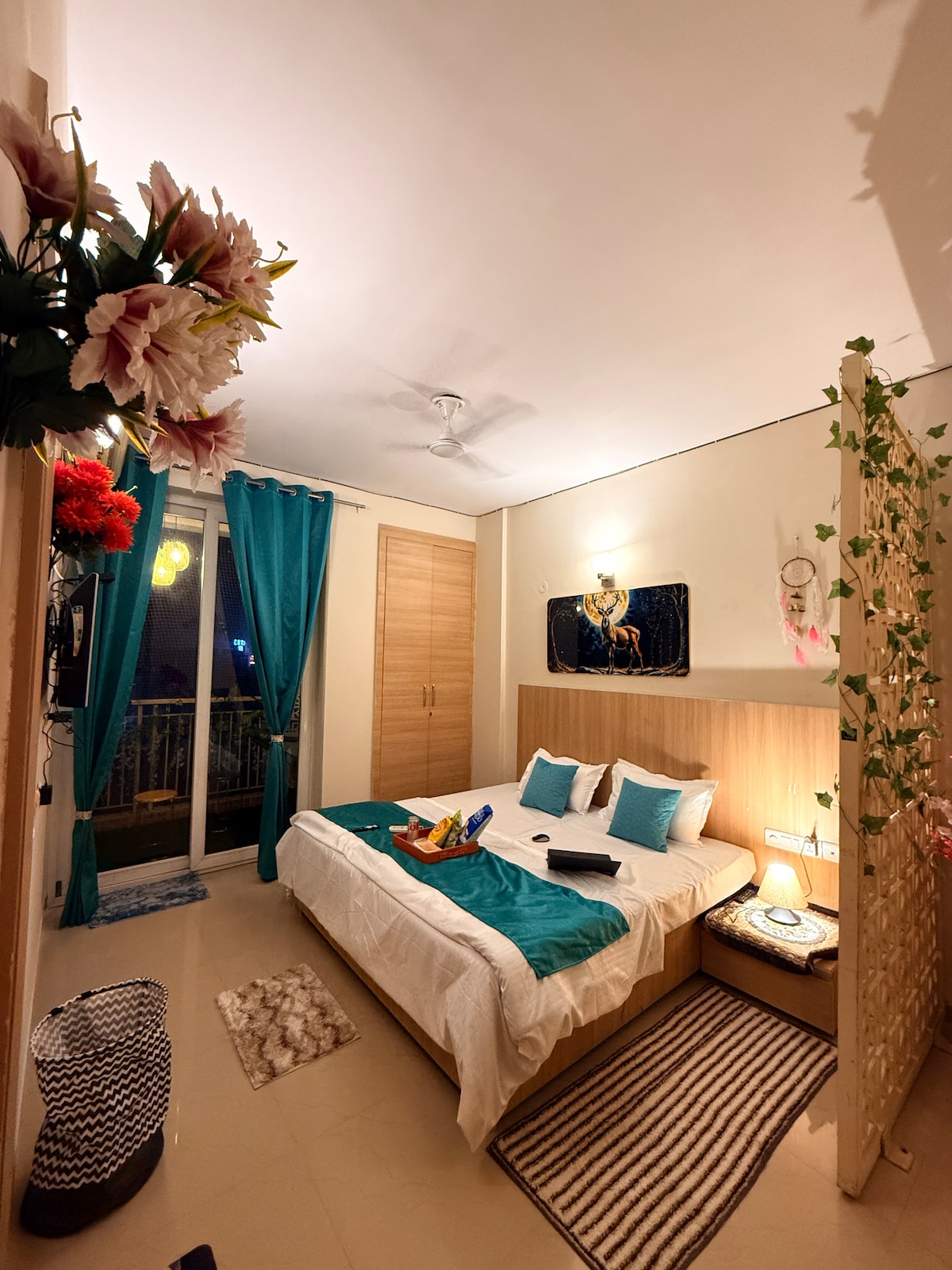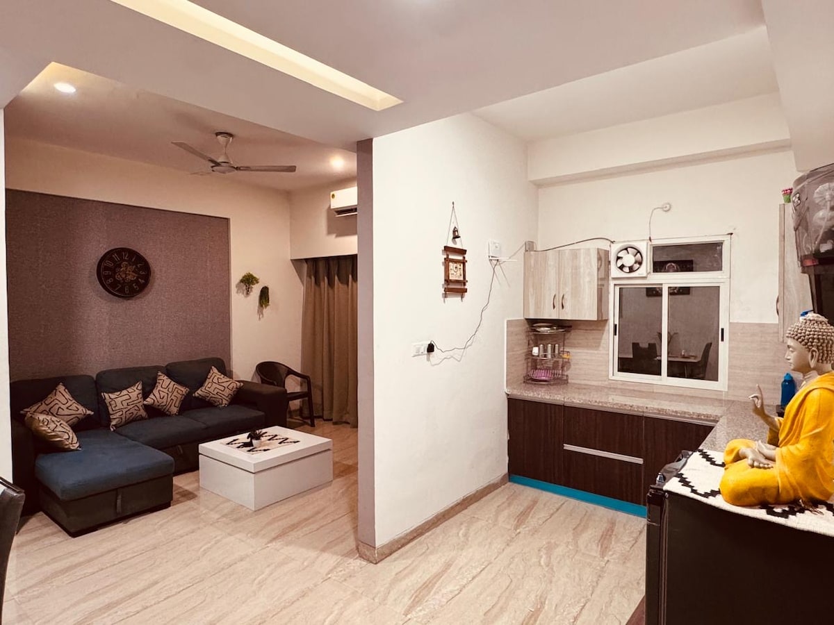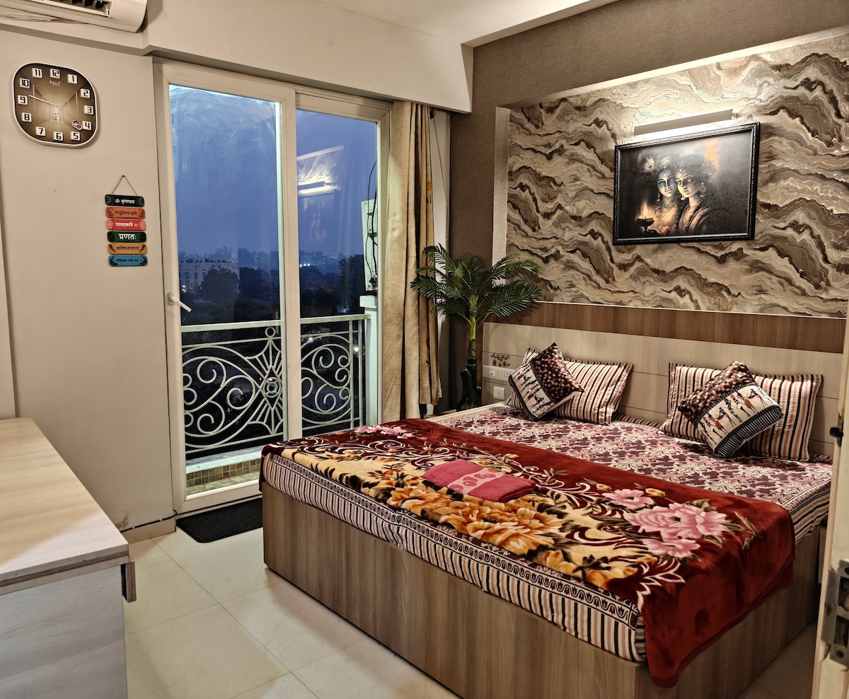 Enjoy a comfortable stay in our centrally-located and beautifully designed 1BHK apartment in Vrindavan. This apartment is a perfect blend of convenience and serenity. The apartment provides a peaceful retreat while keeping you well connected to the city. Multiple multi-cuisine restaurants, grocery stores, and daily-need shops are located just outside the property, ensuring all essentials are easily accessible during your stay.