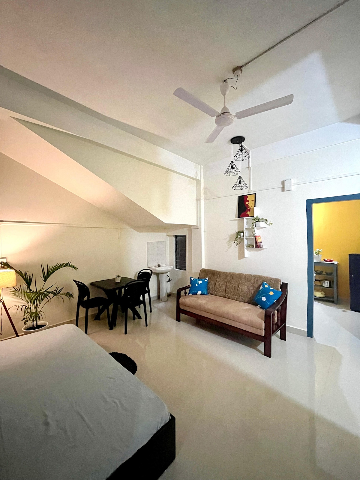 A cute & cosy spot (entire place) with a cuter patio for anyone who needs a break! In the second floor of a two-storied home, separate private entrance. Well ventilated (& has AC), comfortable, peaceful, centrally located and very safe. The amenities are exactly as is visible in the photos. Has high speed wifi. A special note: Safe space for all women travellers. Please keep in mind the following : Overnight stays only. Couples above the age of 21. Government IDs at the time of checking-in.