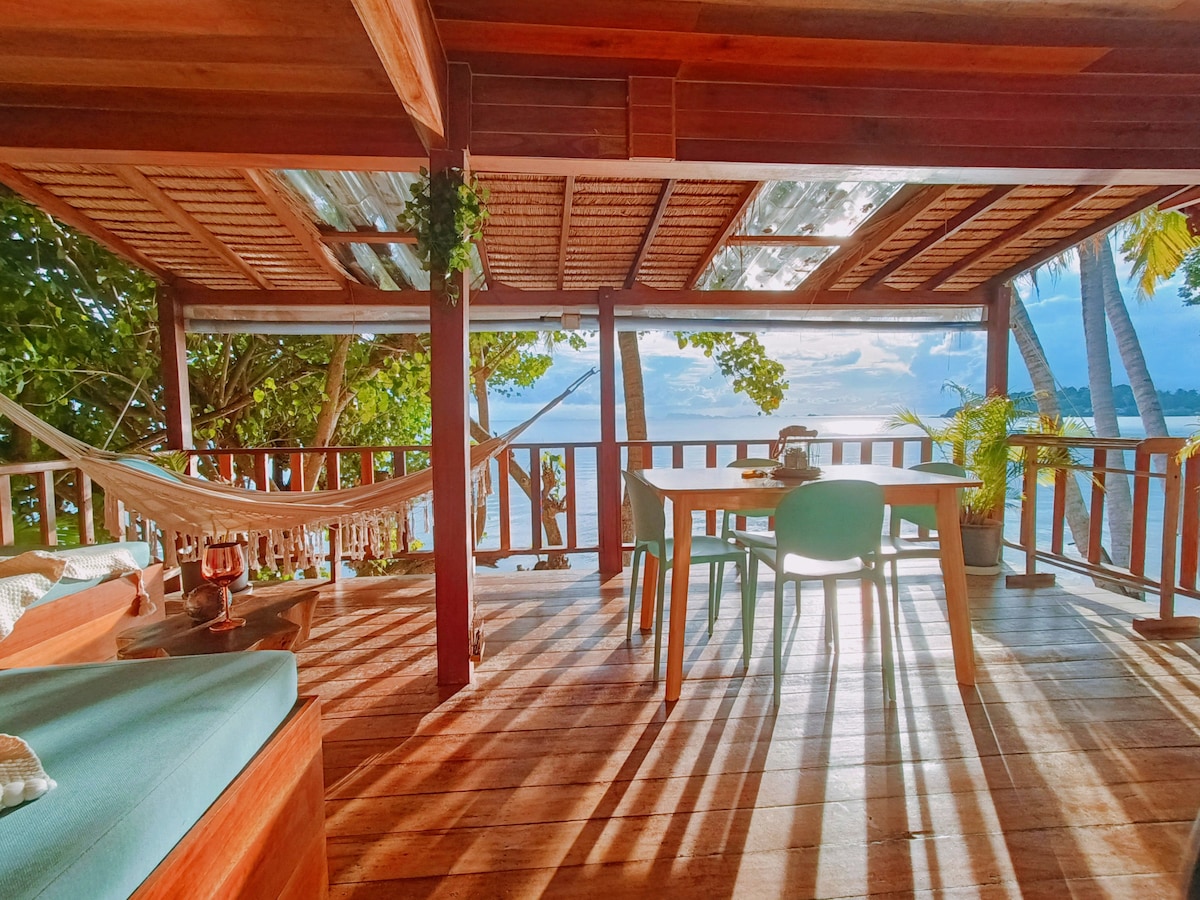 Discover our newest two-story eco-bungalow right on the water’s edge. Thoughtfully designed for those who seek both comfort and sustainability. Wake up to stunning sea views and unwind in the peaceful sound of the waves. Built with eco-friendly bamboo, it embodies our commitment to sustainable living. Whether you’re here to relax or explore, experience the best of island life, surrounded by nature. The pool is shared by all guests :)