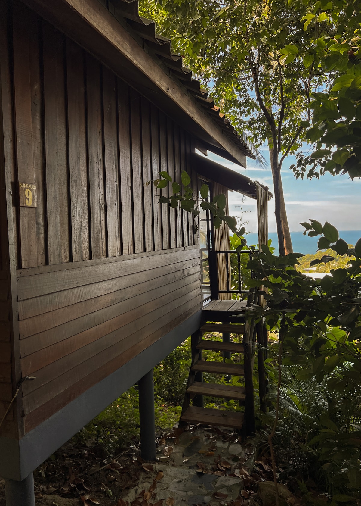We have 2 almost identical Eco Bamboo bungalows in a secluded eco retreat down a quiet foot path nestled in tropical garden with a beautiful seaview. This unique A-frame bungalow is made almost entirely of bamboo and wood and as close to live in nature as you can get. It is simple, minimalist, but elegant design for couples or individual travelers who would like to have and share a natural living experience.