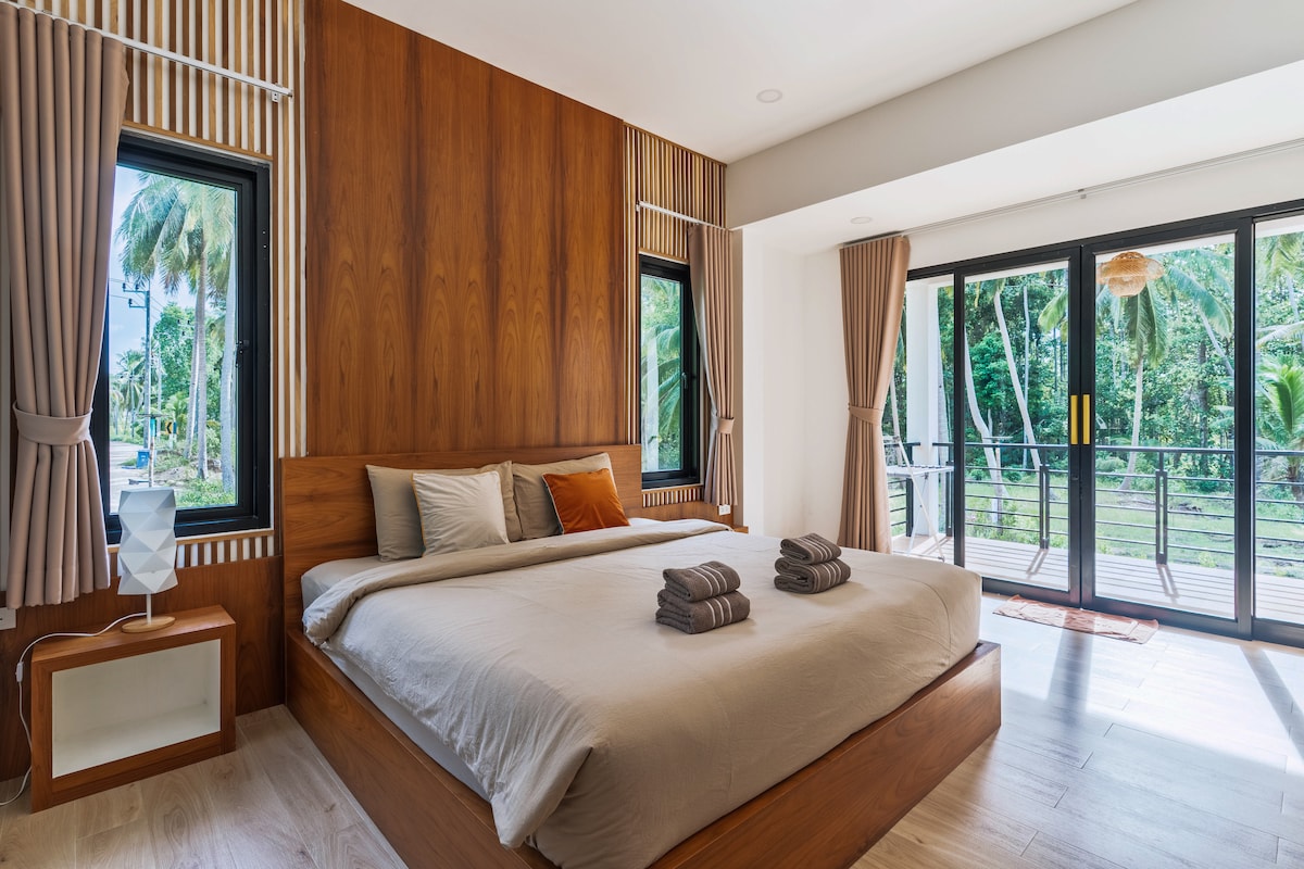 Escape to paradise on your balcony above the jungle overlooking Hin Kong Bay. Breathtaking views from every corner of this beautifully designed 2 bedrooms / 3 baths villa . The split-level master bedroom has high ceilings and a bathtub overlooking Ang Thong national marine Park. The kitchen and living area open to the garden and the saltwater pool. Comfortable beds, premium linens await your arrival. Best restaurants and cafes are nearby. All you need for a perfect holiday in paradise
